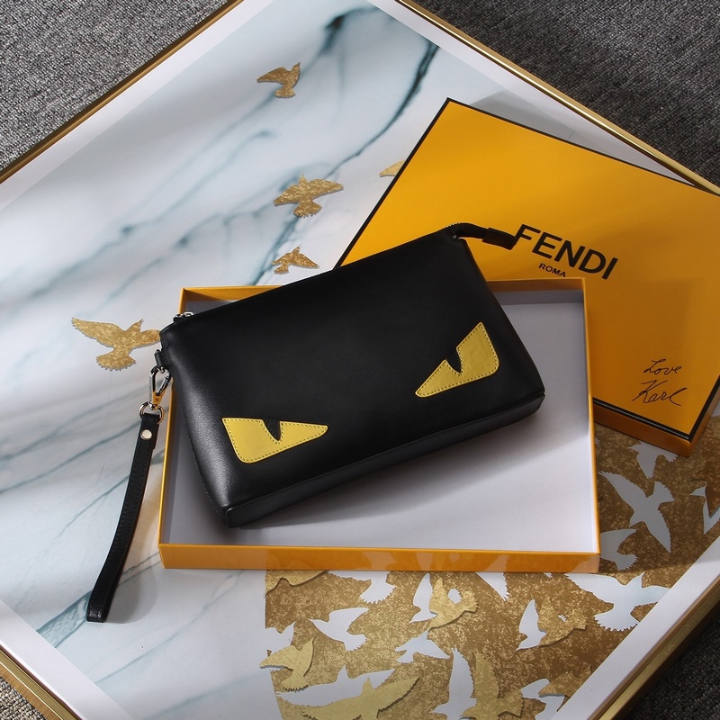 펜디 9915번 봄과 가을 신상 형광 노란색 두꺼운 소가죽 클러치백