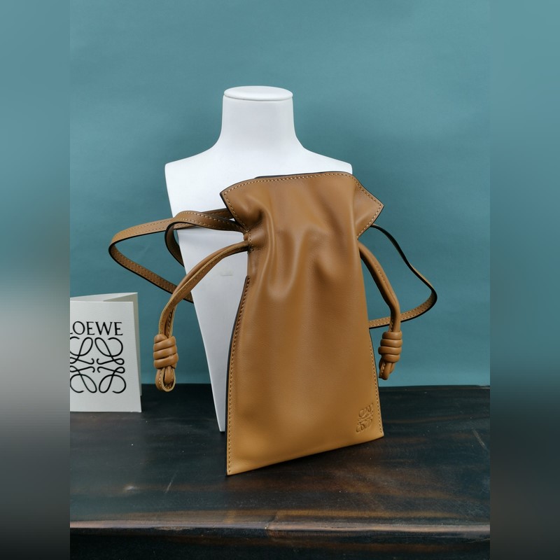 로에베 나파 가죽으로 만든 실용적인 클러치 백 어깨끈과 끈이 달려 있으
