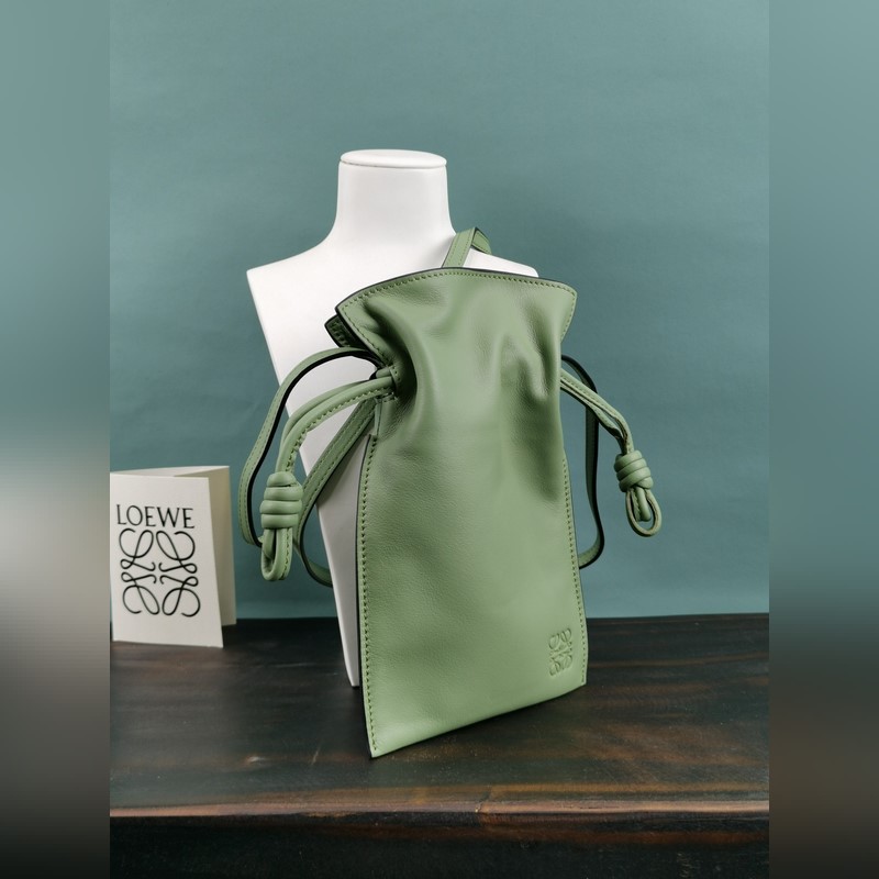 로에베 나파 가죽으로 만든 실용적인 클러치 백 어깨끈과 끈이 달려 있으
