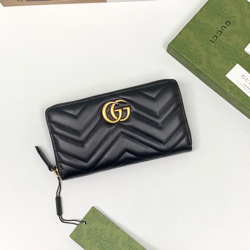 GUCCI 신상 모델: 443123 블랙 풀 지퍼 지갑 GG 마몽트 풀지