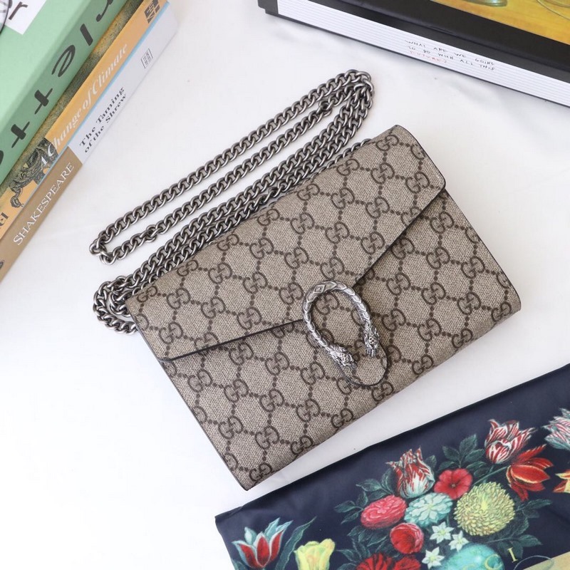 GUCCI 모델 번호: 401231 브라운 PVC 레드 가죽 체인 미니