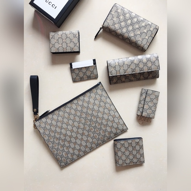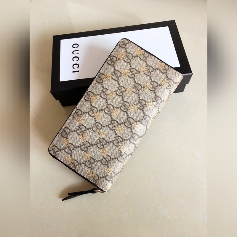 GUCCI 골드 비 라벨 남성용 지갑 모델: 4100010002 샴페인