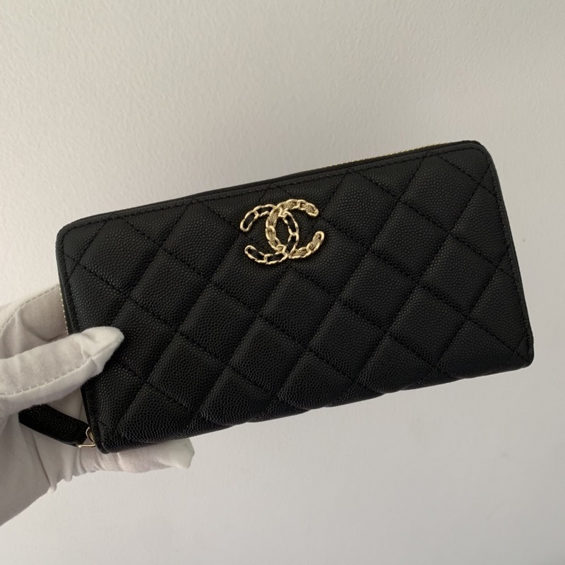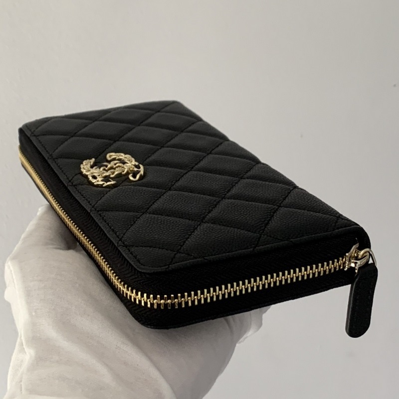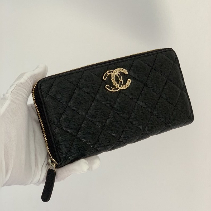 CHANEL 긴 지퍼 지갑 클러치 새로운 긴 지퍼 지갑 로고가 클래식