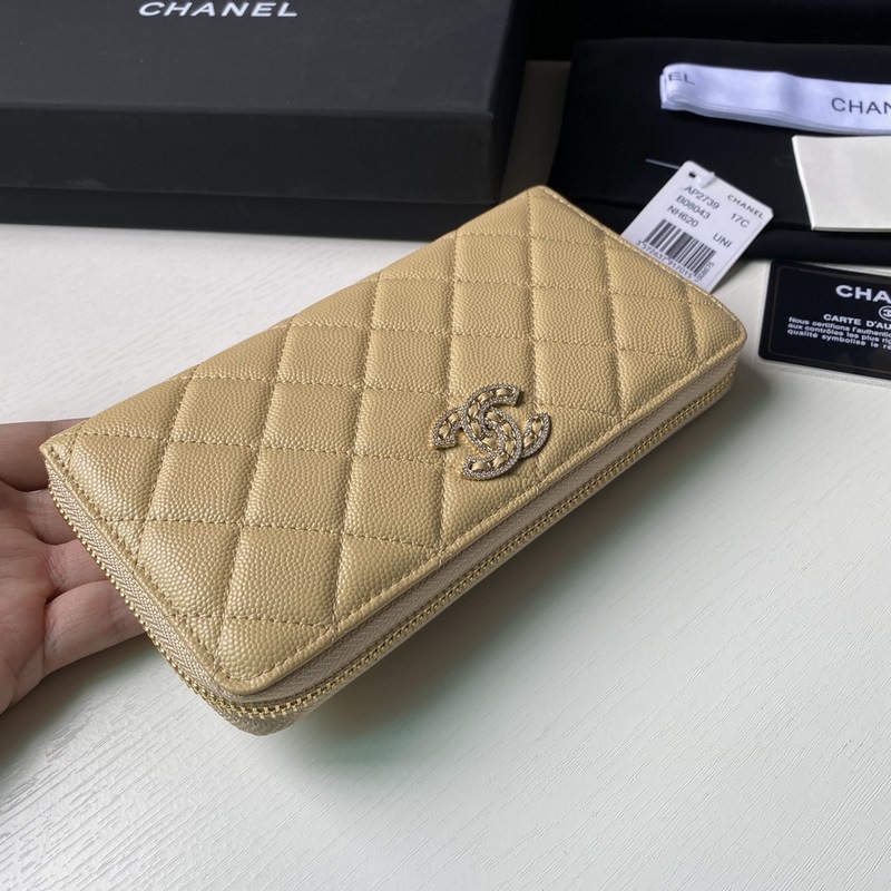 CHANEL 지퍼 롱 지갑 클러치 최고급 소가죽에 새로운 루이비통 로고가