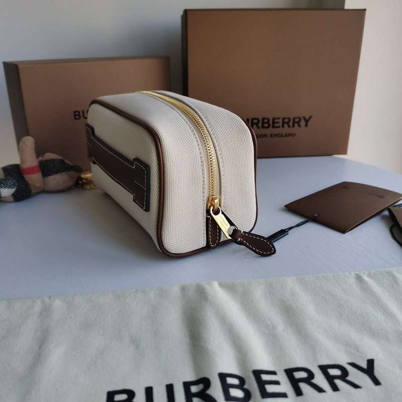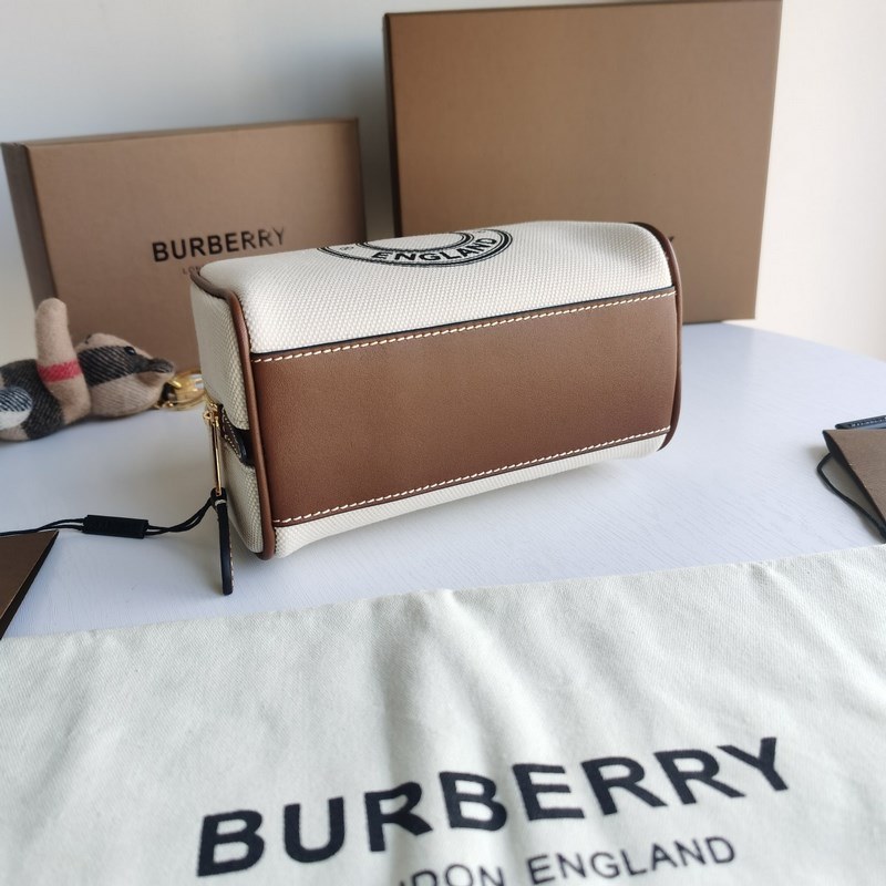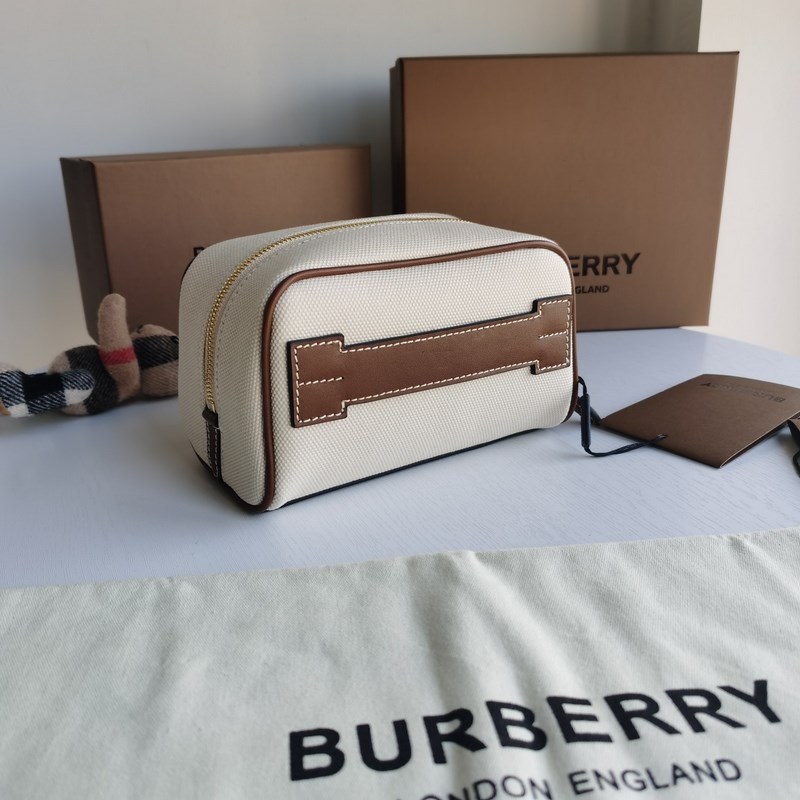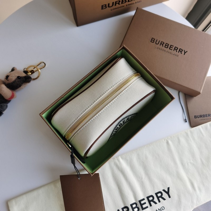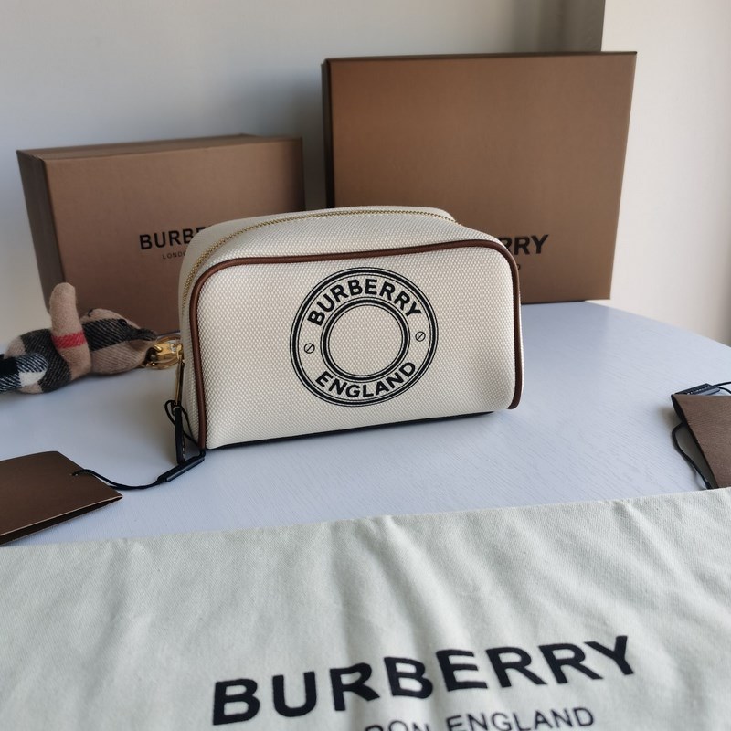버버리 전용 로고 지퍼 세탁 가방 상단 그레인 송아지 가죽 트리밍 보관