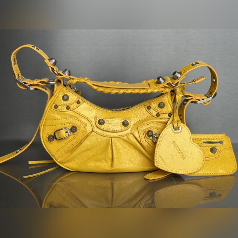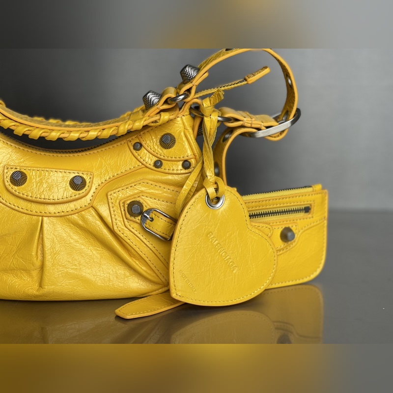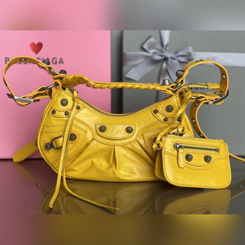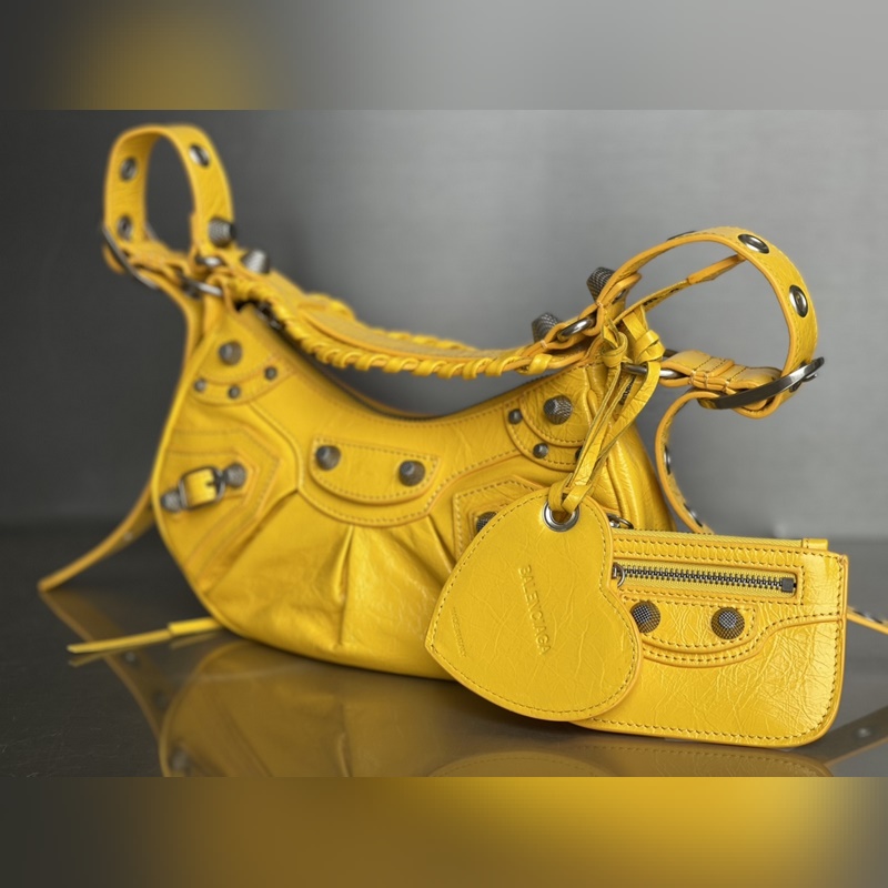 발렌시아가 르 카골 XS 숄더백 (옐로 크로커다일 엠보싱)