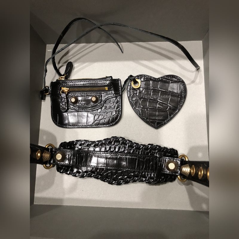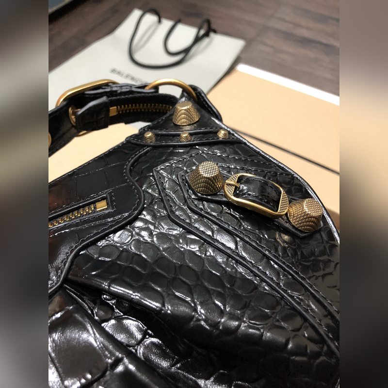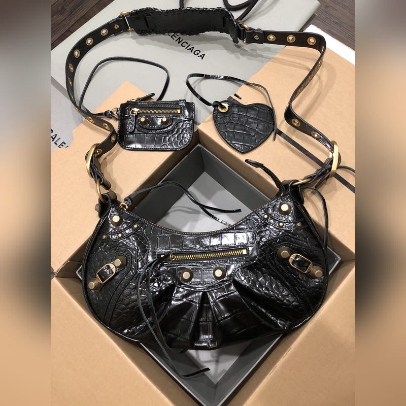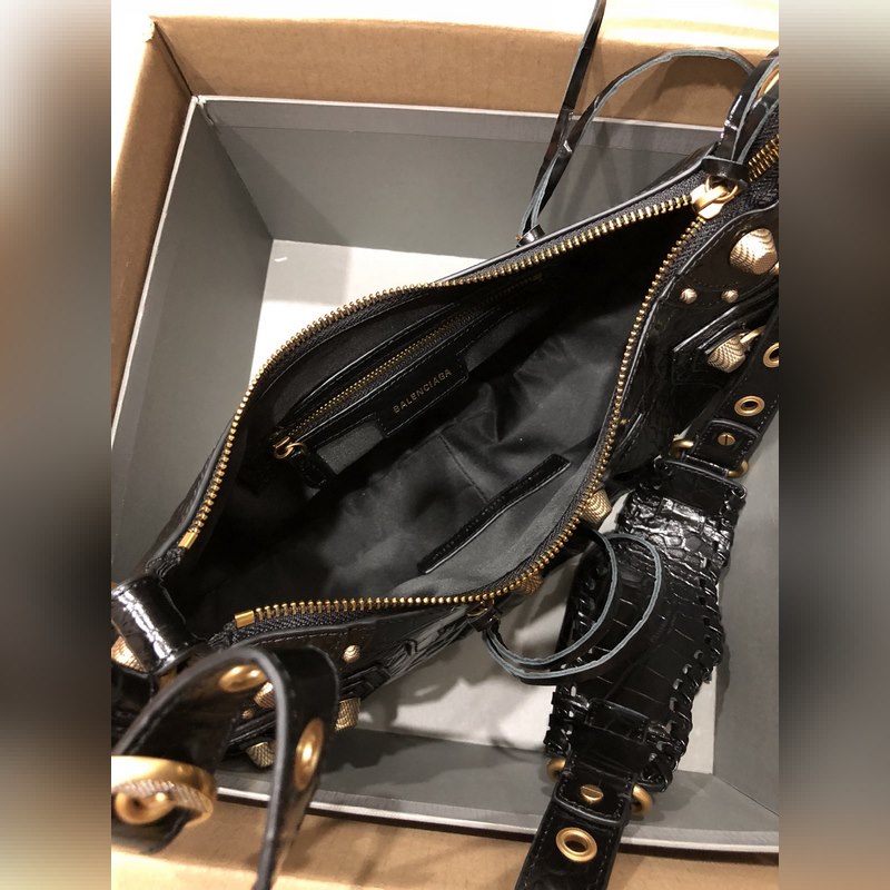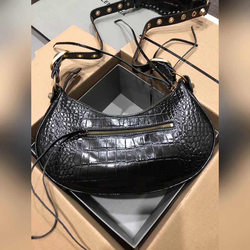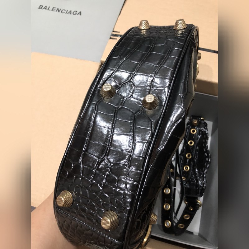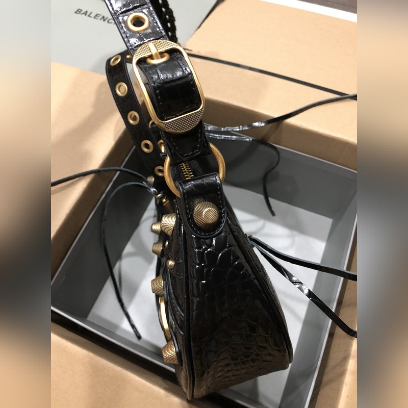 발렌시아가 르 카골 스몰 숄더백 (블랙 크로커다일 엠보싱 골드 버클)
