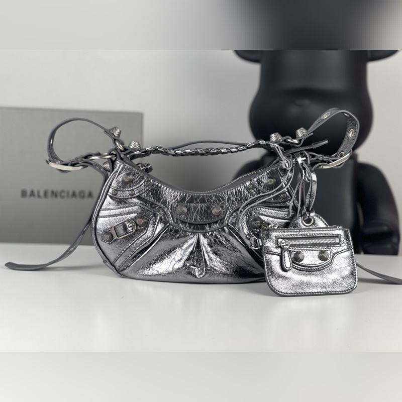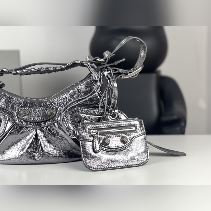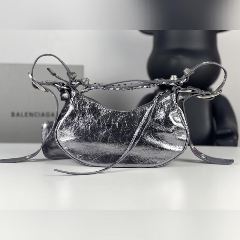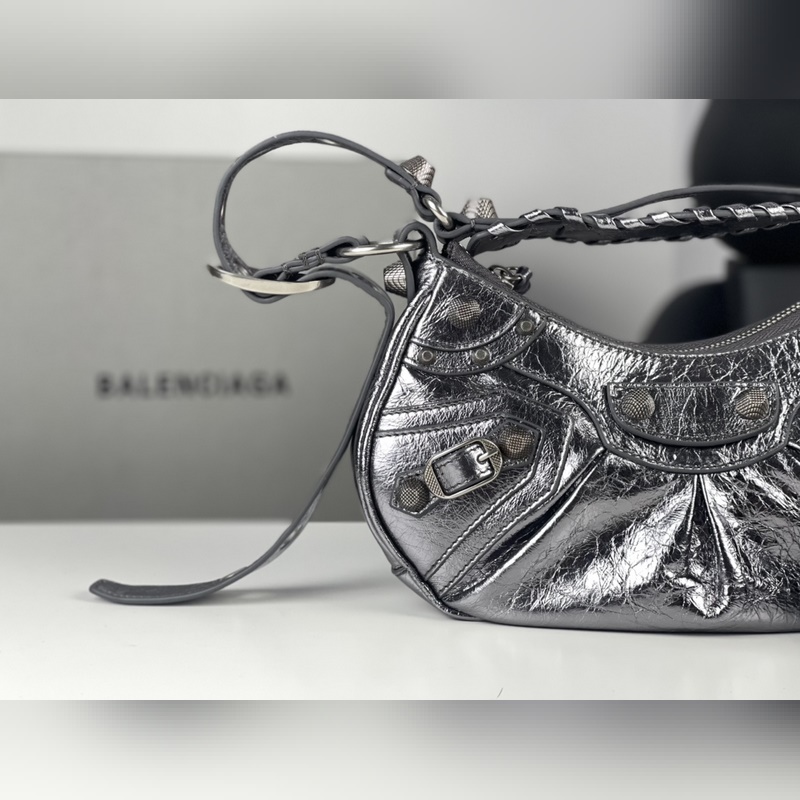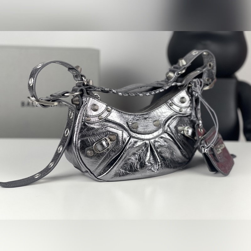 발렌시아가 은회색 반달형 겨드랑이 주머니 만두 주머니 클래식 오토바이