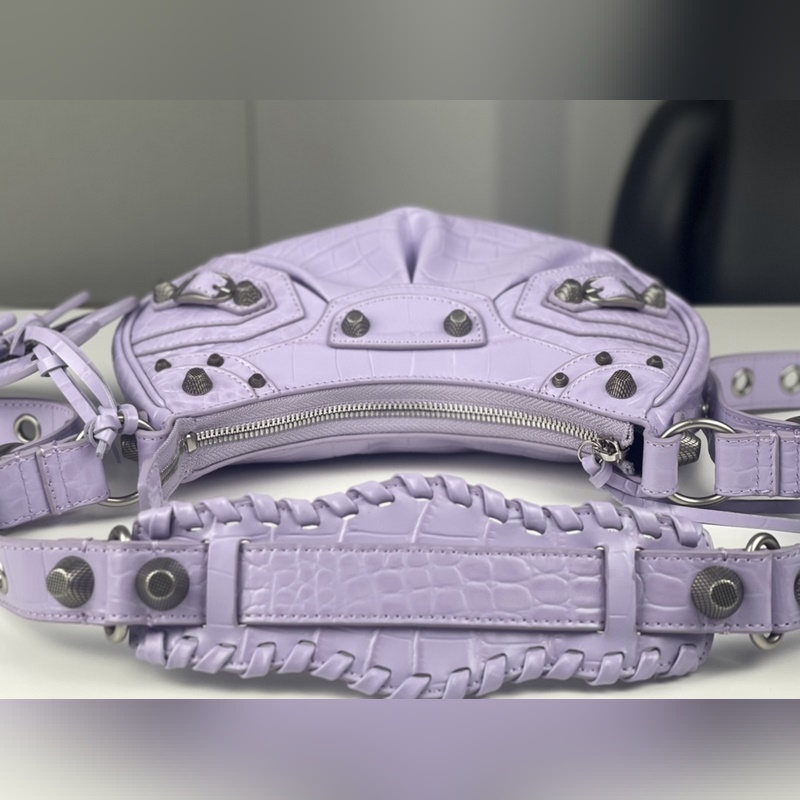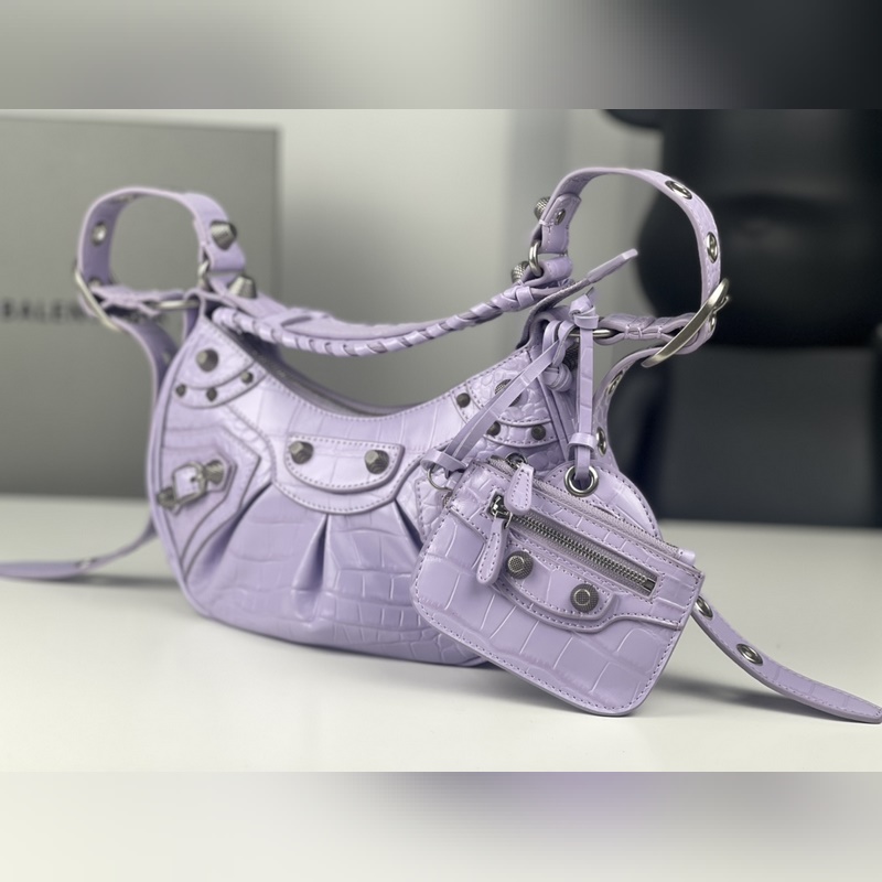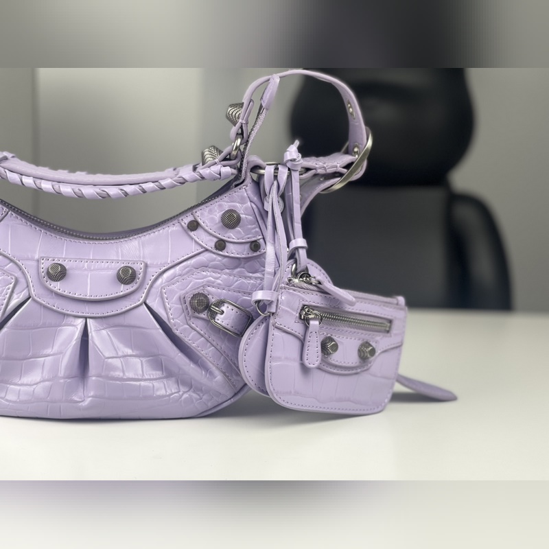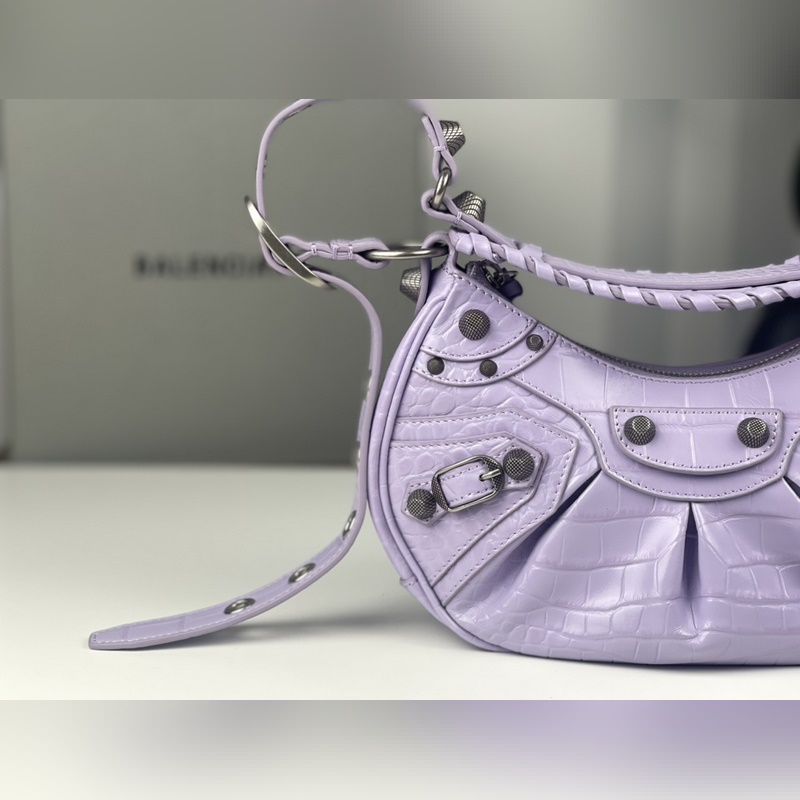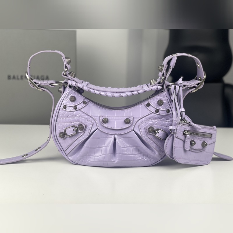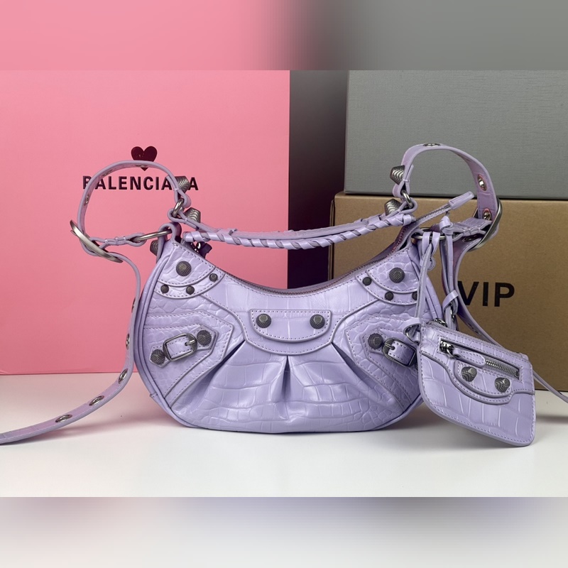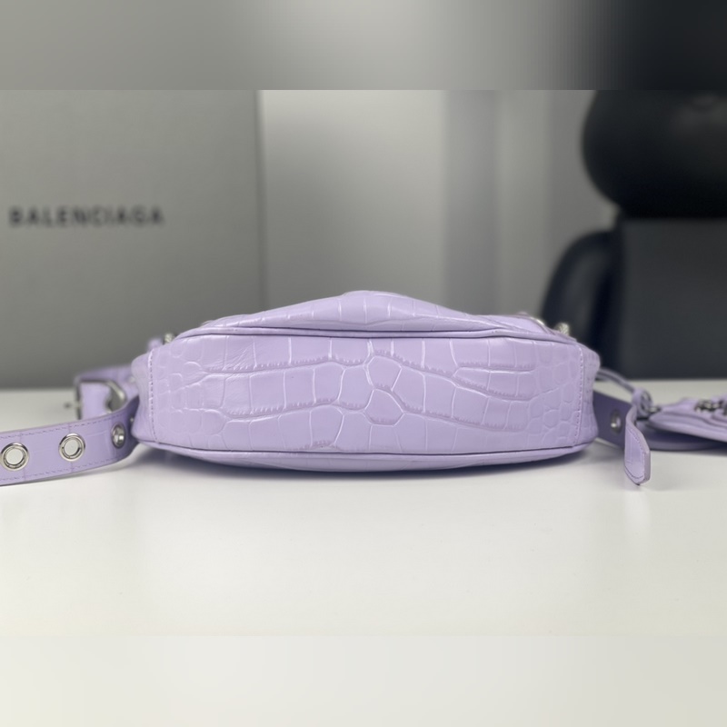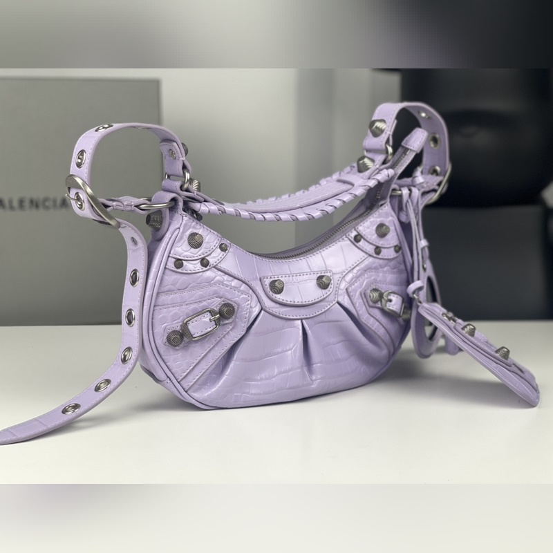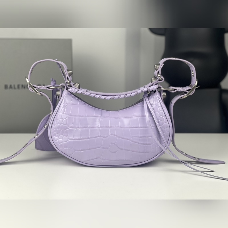 발렌시아가 악어 무늬 보라색 반달형 겨드랑이 주머니 만두 주머니 클래