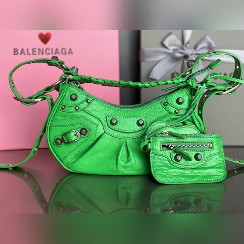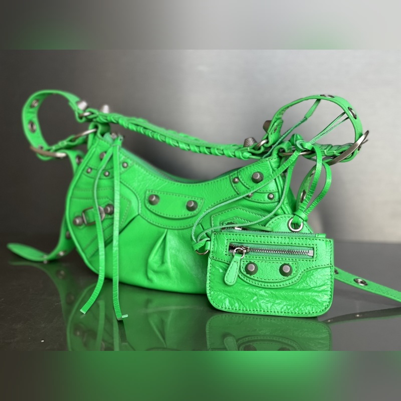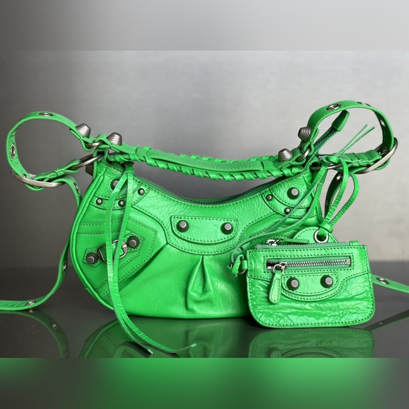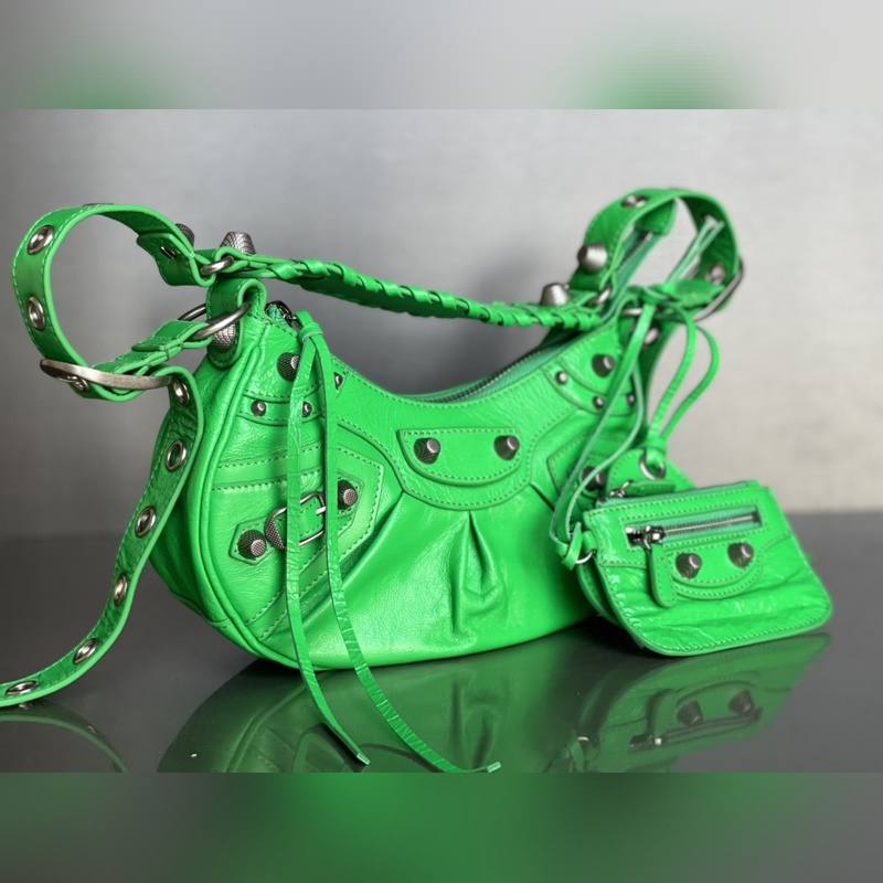 발렌시아가 작은 녹색 반달형 겨드랑이 주머니 만두 주머니 클래식 오