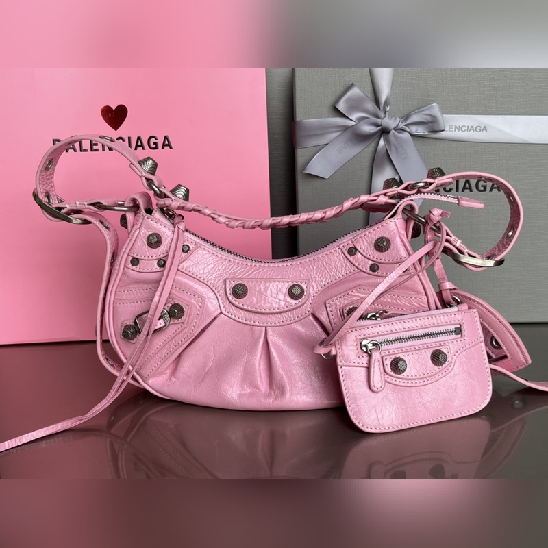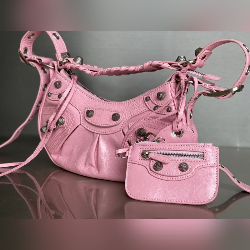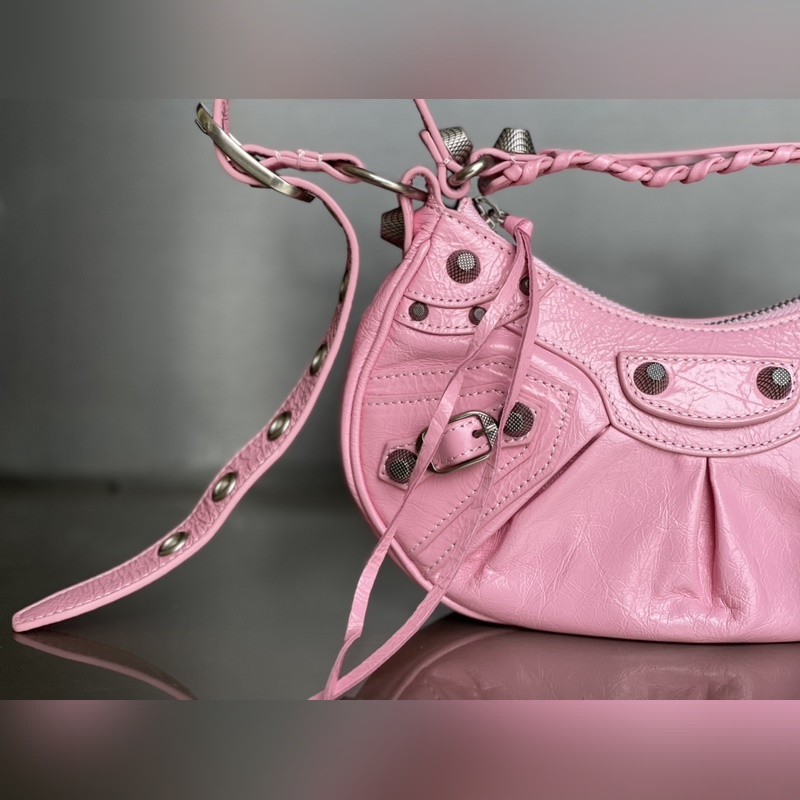 발렌시아가 작은 기름과 왁스 가루 반달 겨드랑이 만두 주머니 클래식