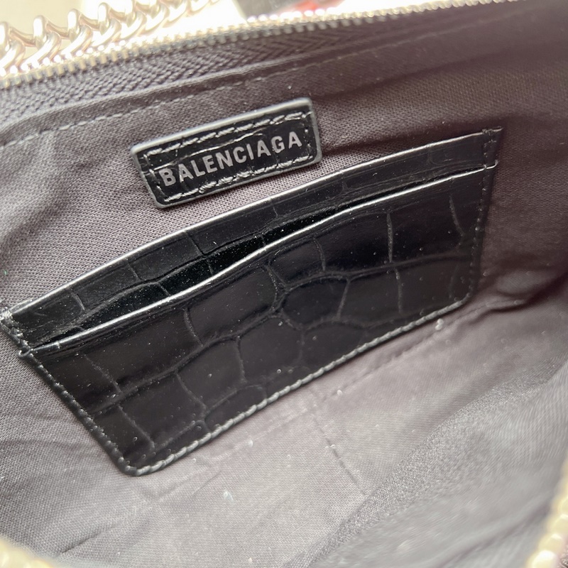 Balenciag* Le Cagole 미니 하프문 겨드랑이 가방/크로스 바디 백 전통적인 오토바이 가방에 변형이 가해졌습니다. 두 개의 어깨 끈: ①짧은 체인 어깨 끈은 손으로 들고 다니는 언더암 백으로 사용할 수 있습니다. ②긴 가죽 어깨 끈은 대각선으로 착용할 수 있습니다. 클래식한 오토바이 요소를 사용합니다. 컴팩트하고 정교한 디자인은 다양한 방식으로 착용할 수 있으며 모든 디테일에 담긴 디자인 감각은 정말 대단합니다. 너무 좋습니다! 고급스러운 느낌을 주면서도 캐주얼하고 분위기 있는 제품입니다. 미니: 길이 21cm 높이 11cm 폭 4cm