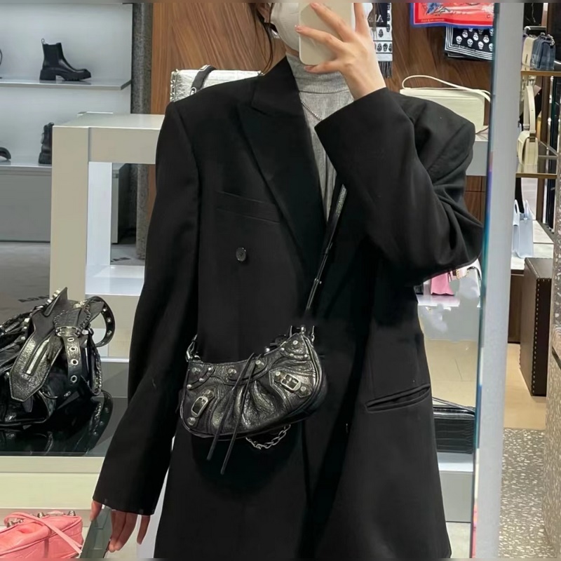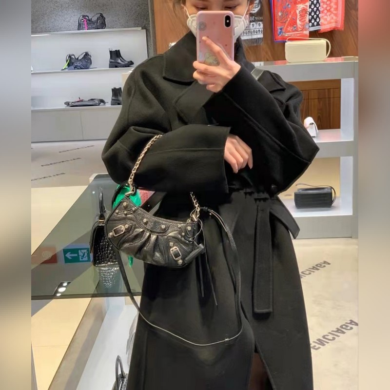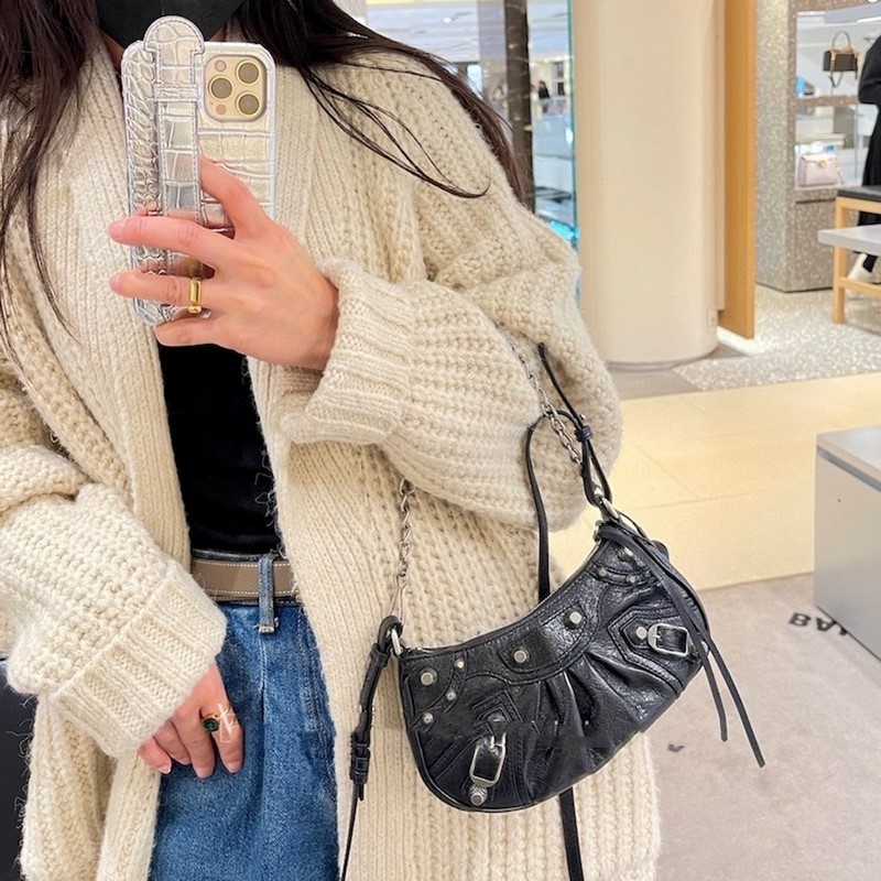 발렌시아가 블랙 BB Le Cagole 반달형 겨드랑이 가방 크로스 바디 백