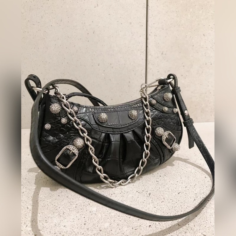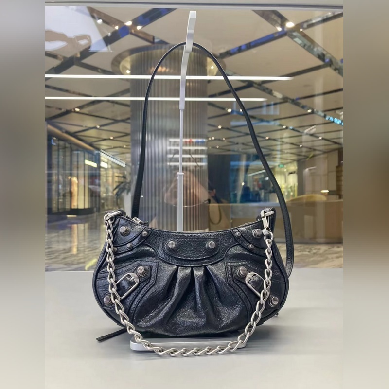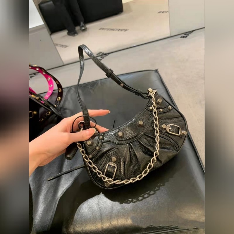 발렌시아가 블랙 BB Le Cagole 반달형 겨드랑이 가방 크로스 바디