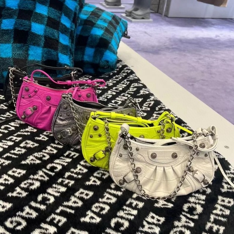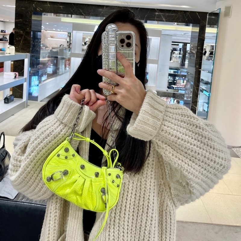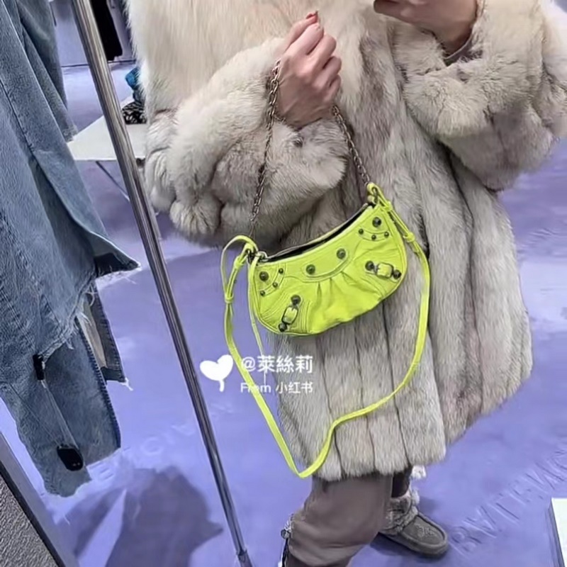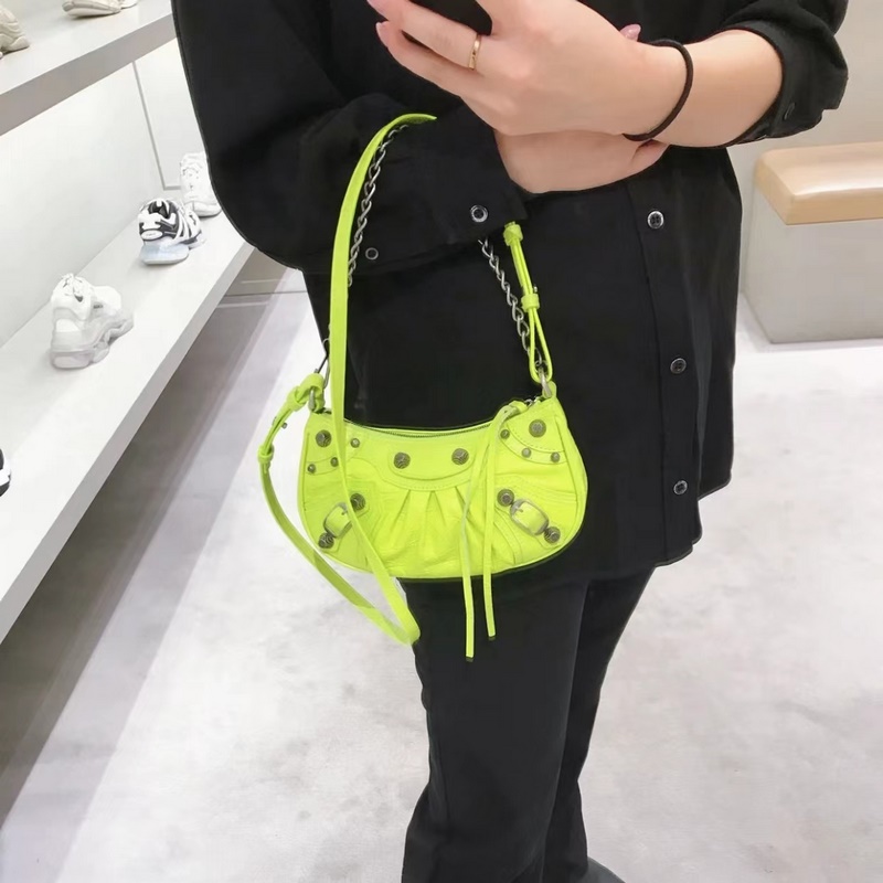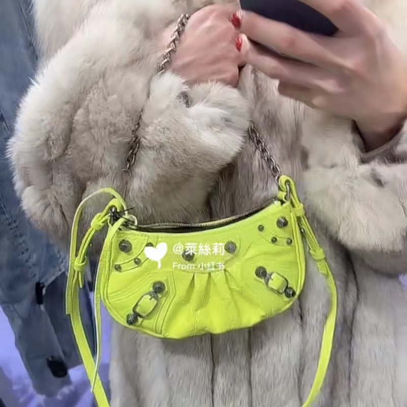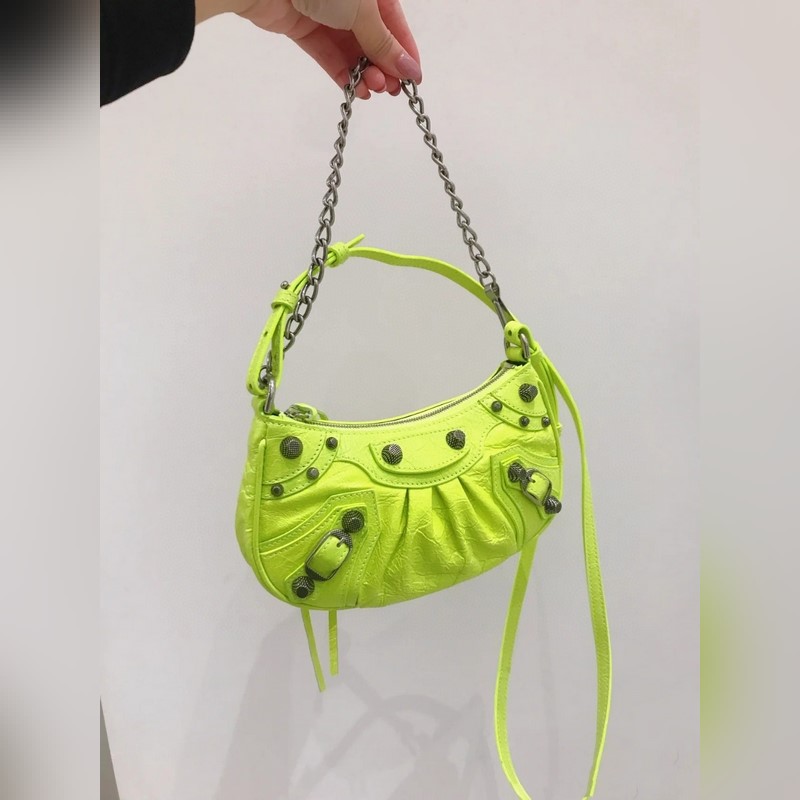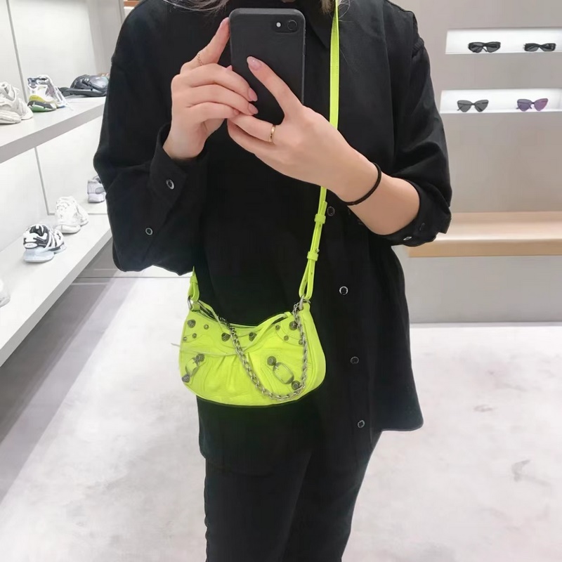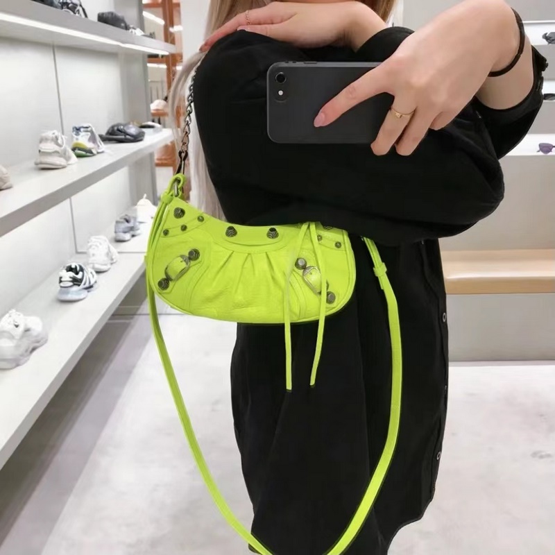 발렌시아가 형광 녹색 BB Le Cagole 반달형 겨드랑이 가방 크로스