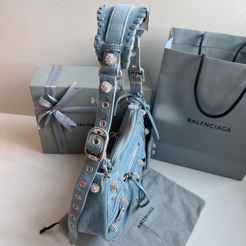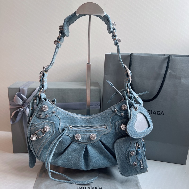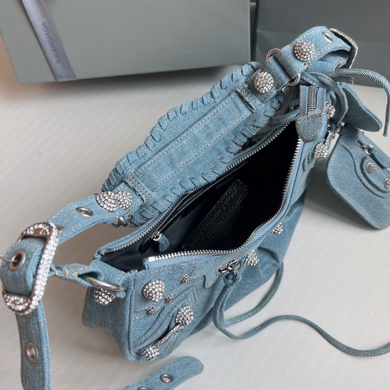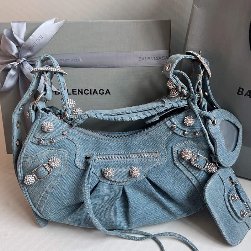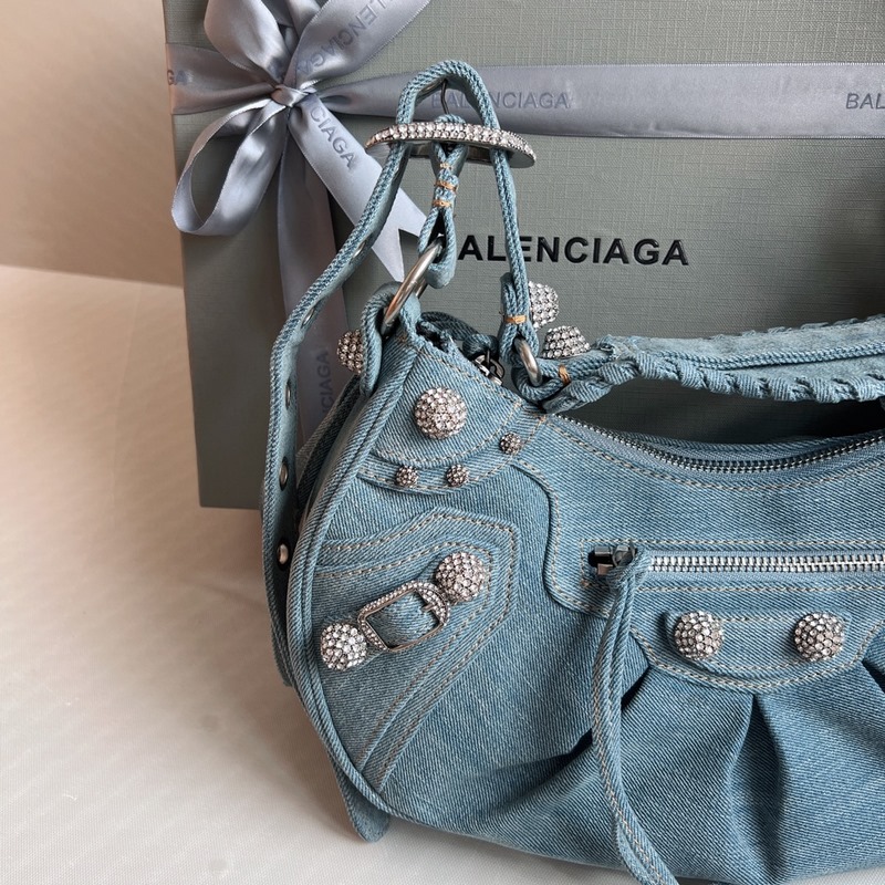 다이아몬드 모양의 금속 장식과 블링블링한 데님 발렌시아 까글레 크레센트