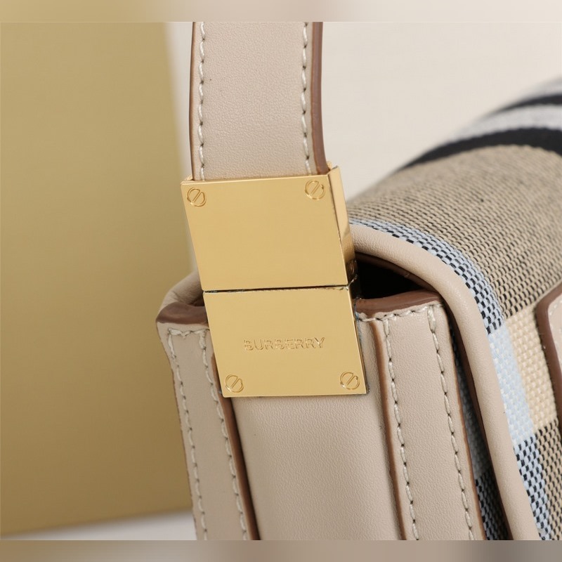 버버리 패션쇼 모델 숄더백 금도금 하드웨어 외부 슬립 포켓 지퍼 포켓으로 쉽게 접근 가능 크기: 26 x 5.5 x 15cm