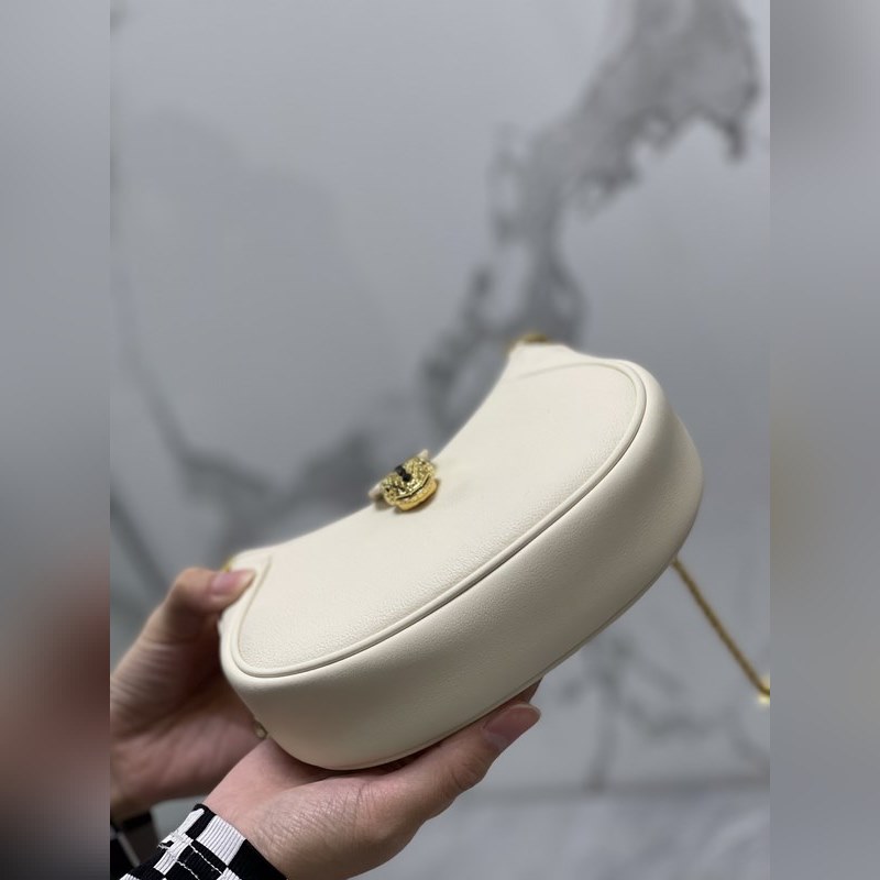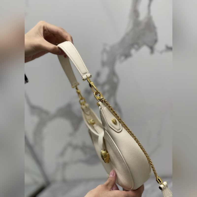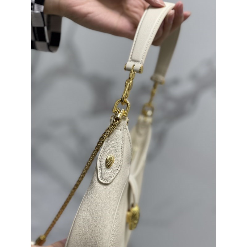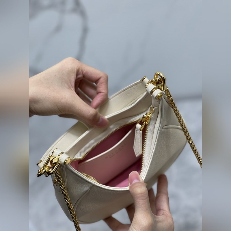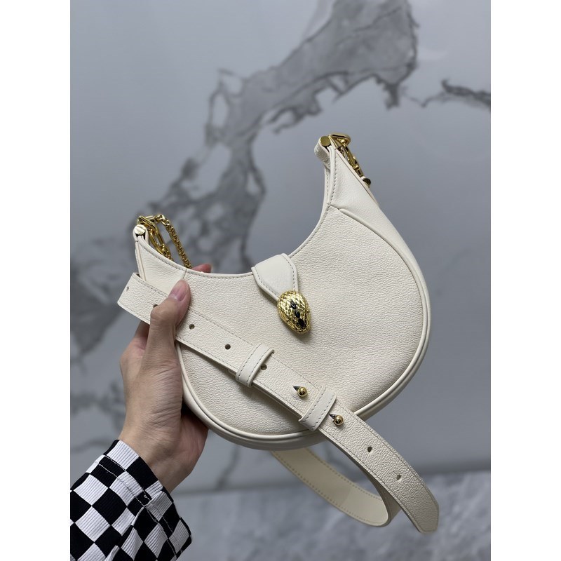 불가리 세르펜티 엘립스 시리즈 스몰 크로스 바디 백 언더암 백 모델 번호: 291765 독특한 모양 상징적인 디테일 다재다능한 매력으로 SERPENTI FOREVER 세계에 세련된 느낌을 더해줍니다. 이 데일리 백은 중앙에 어반 그레인 송아지 가죽 패널이 있고 측면에는 부드러운 송아지 가죽이 사용되었습니다. 금도금 황동 하드웨어 검은 비늘과 빨간색 에나멜 눈을 가진 매력적인 클래식 뱀 머리 자석 앞면 잠금장치로 구성되어 있습니다. 단일 수납공간 길이 조절이 가능한 체인 가죽 숄더 스트랩 탈착식 가죽 손잡이가 달려 있어 대각선으로 메거나 클래식한 숄더백처럼 메는 등 다양한 스타일로 연출할 수 있습니다. 실용적인 상단 지퍼에는 내부 포켓 뒷면에 외부 포켓 BVLGARI 금속 로고가 달려 있습니다. 크기: 19.5 x 20 x 5cm