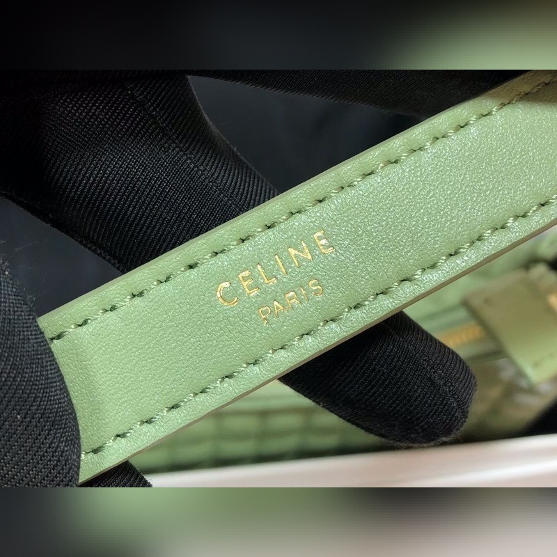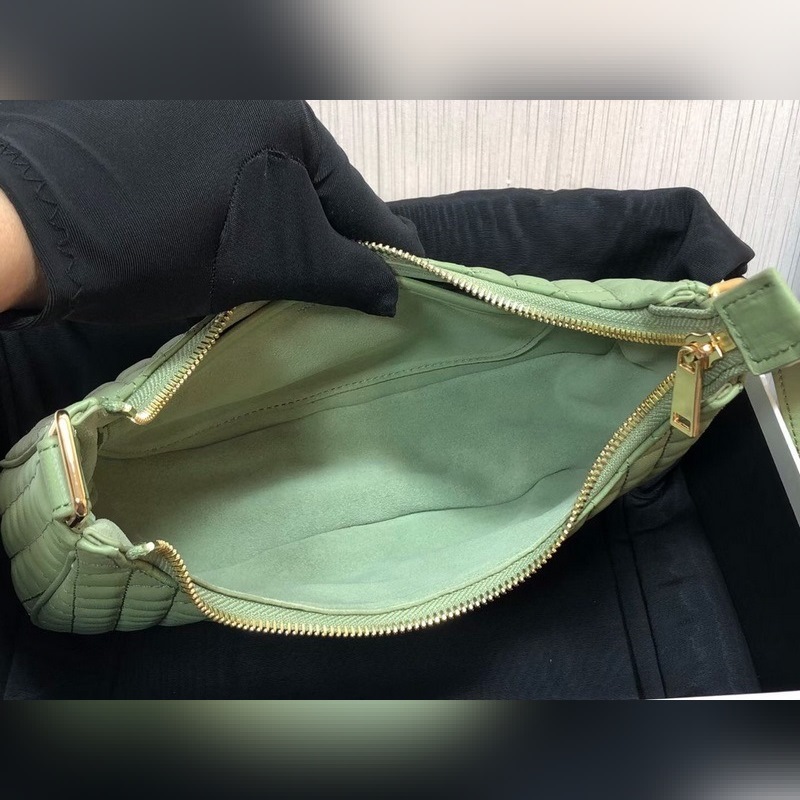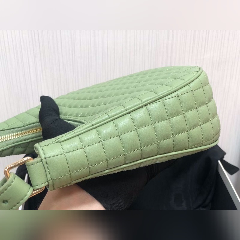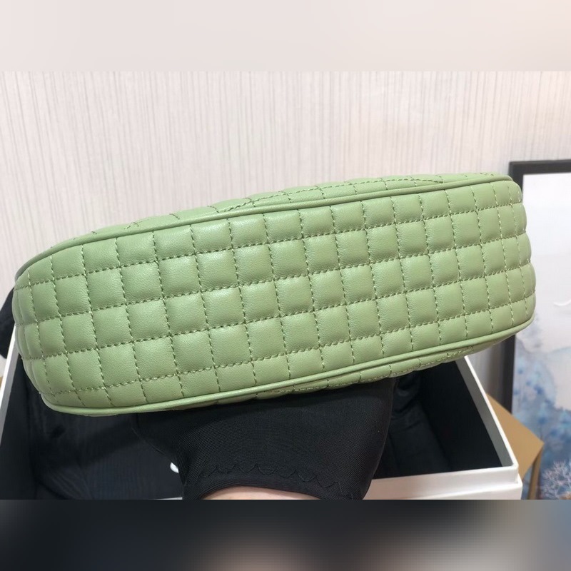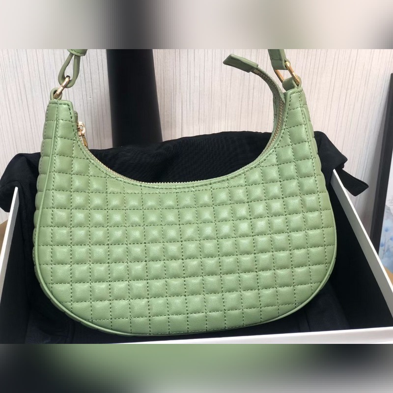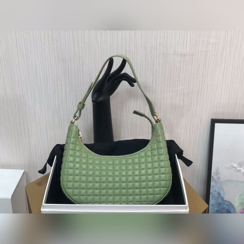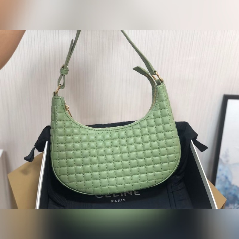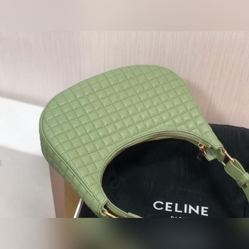 CELINE AVA 퀼팅 양가죽 핸드백 녹색 빈티지 언더암 백 셀린느의 새로운 인기 양가죽 제품 안감은 양가죽 어깨 또는 손에 들 수 있는 지퍼형 내부에 1개의 평평한 포켓 길이 조절이 가능한 가죽 어깨끈(길이 22cm). 크기 23x14x7cm