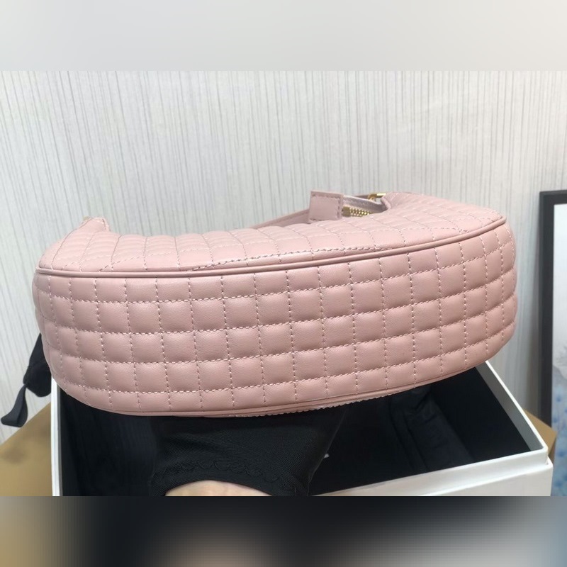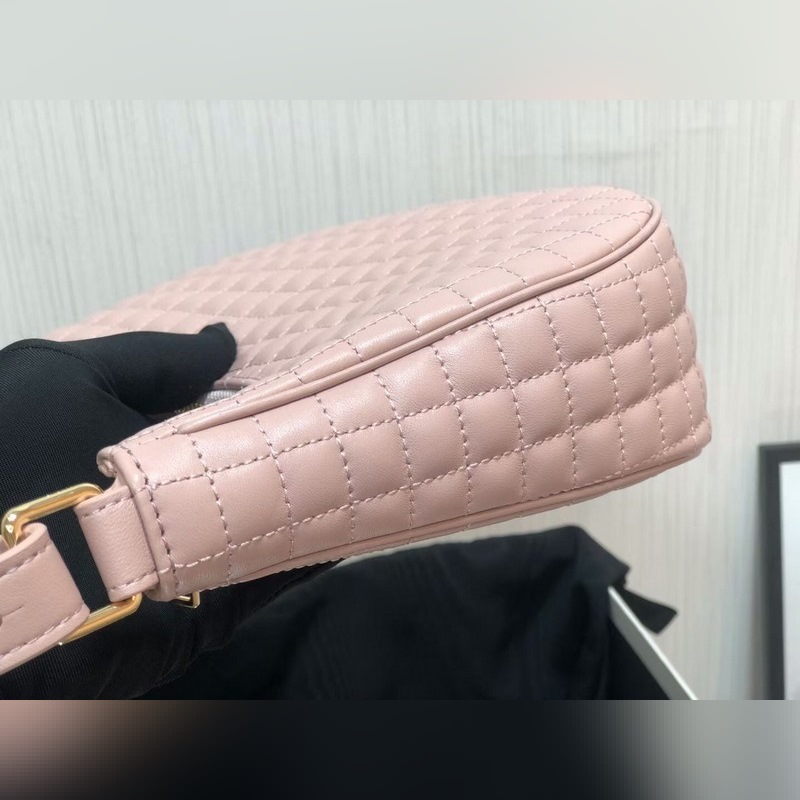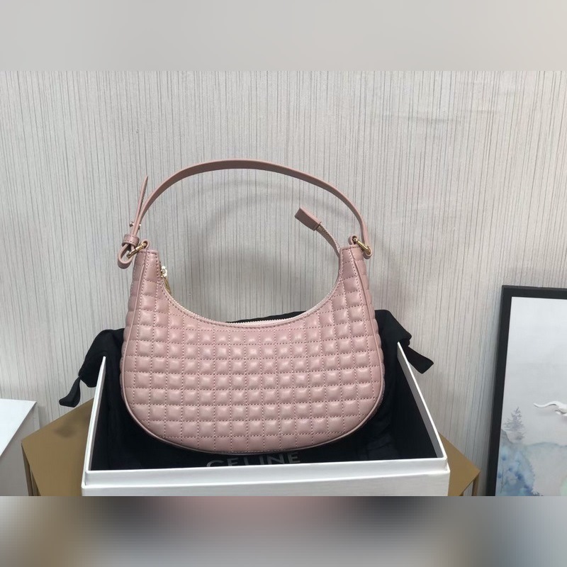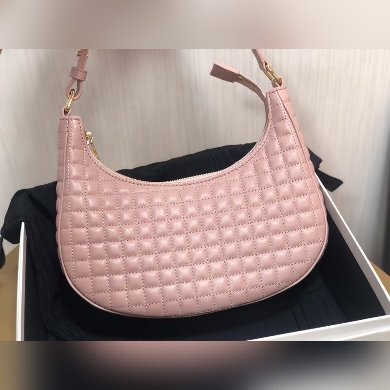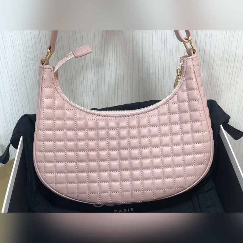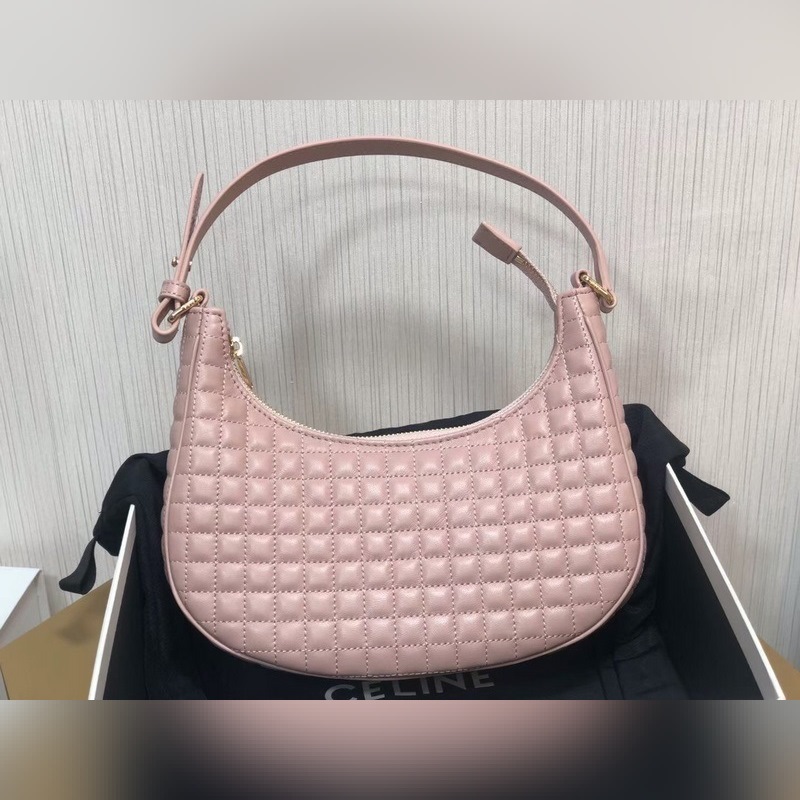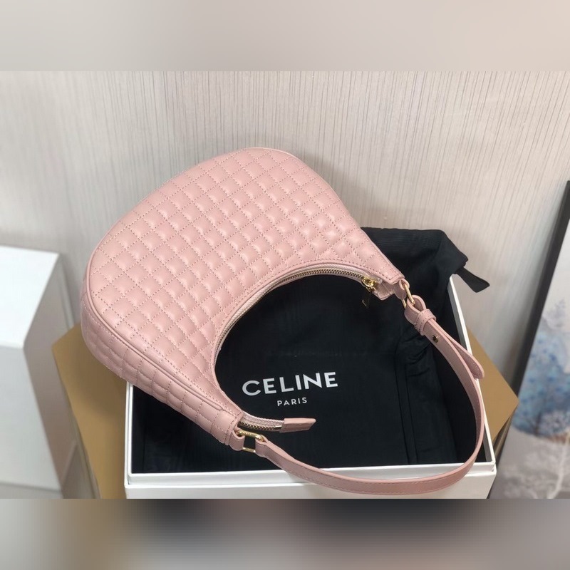 CELINE AVA 퀼팅 양가죽 핸드백 핑크 빈티지 언더암 백 셀린느의 새로운 인기 양가죽 제품 양가죽 안감 어깨 또는 손에 들 수 있는 지퍼 잠금 내부 플랫 포켓 1개 길이 22cm의 길이 조절 가능한 가죽 어깨 스트랩. 크기 23x14x7cm