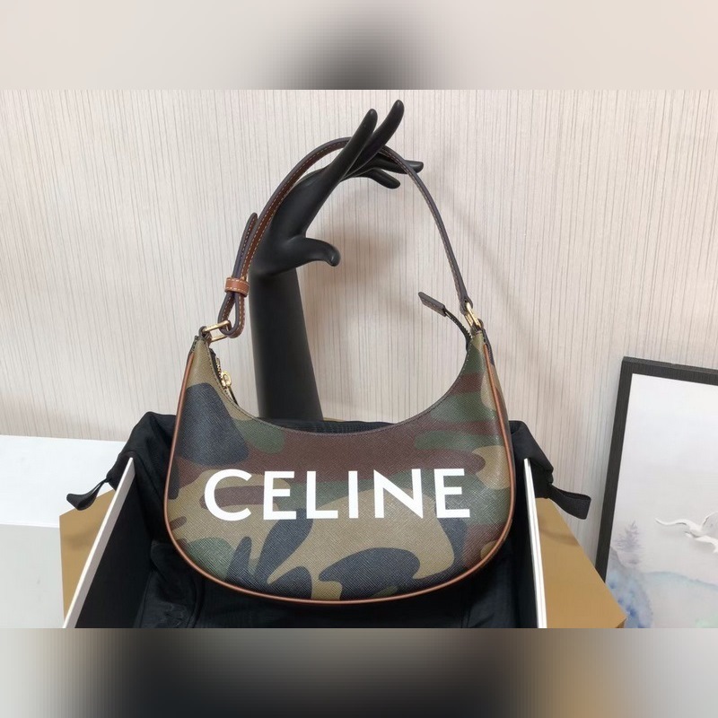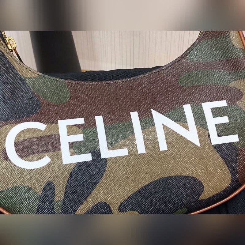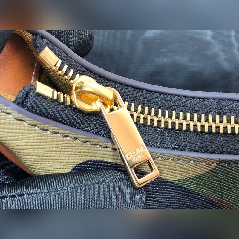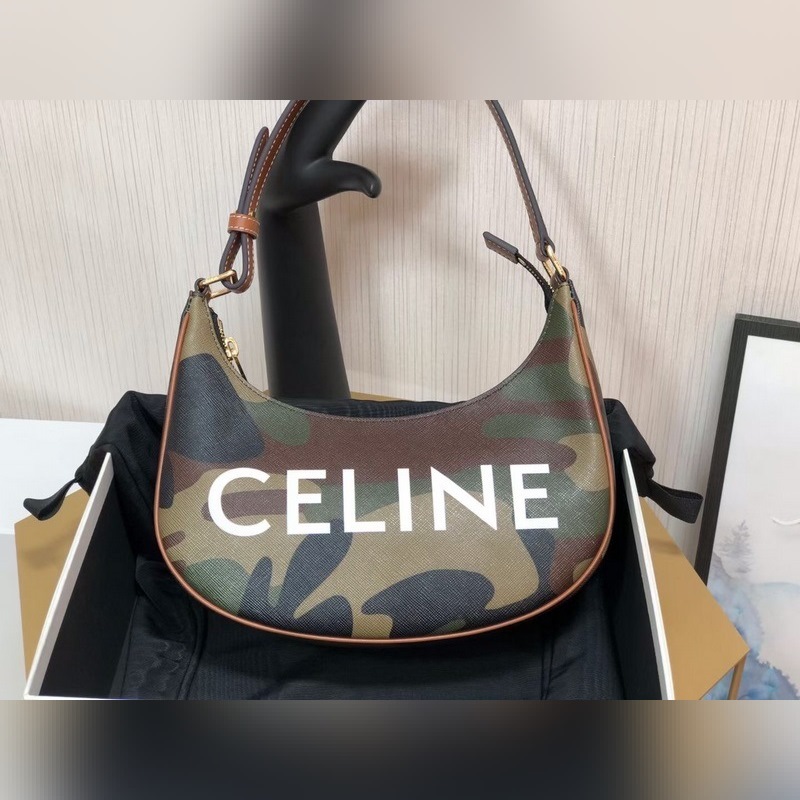 CELINE AVA 카무플라주 캔버스 핸드백 빈티지 언더암 백 셀린느의 또 다른 신상 베스트셀러 어깨 또는 손에 들 수 있는 가방 캔버스 소재 지퍼 잠금 내부 플랫 포켓 1개 길이 조절 가능한 가죽 어깨끈 길이 22cm. 크기 23x14x7cm