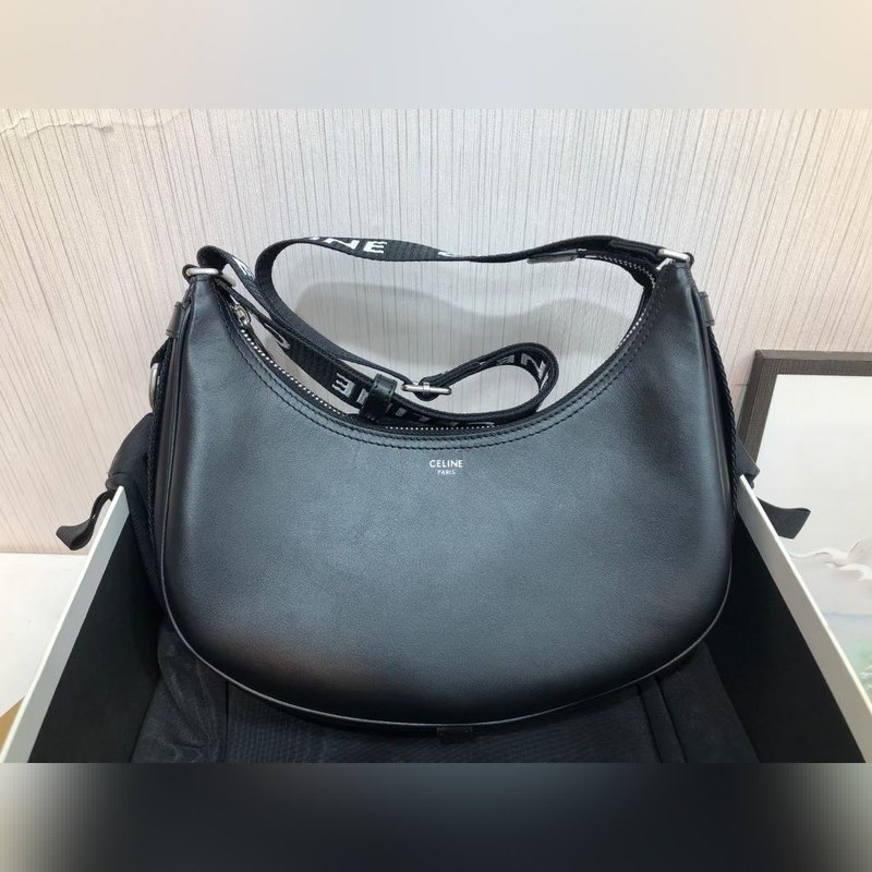 셀린느 미디엄 스무스 카우하이드 셀린느 트림 핸드백 겨드랑이 주머니 눈길