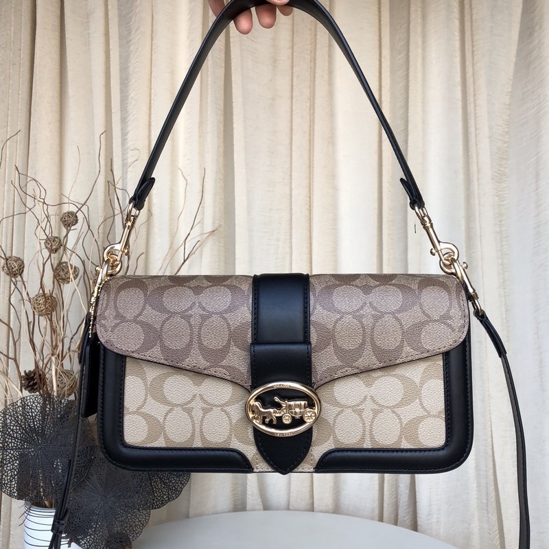 조지 코치 컬렉션 조지 숄더백 크로스바디 토트백 나파 가죽과 부드러운 가죽. 내부 지퍼 포켓. 스냅 잠금장치. 패브릭 안감. 크기 26/15/8 ccm