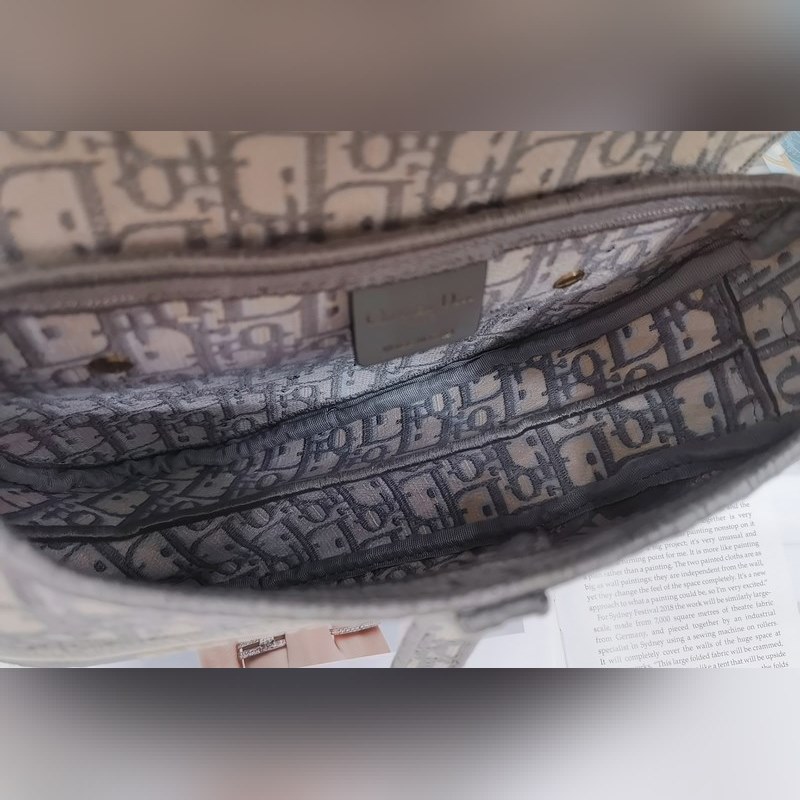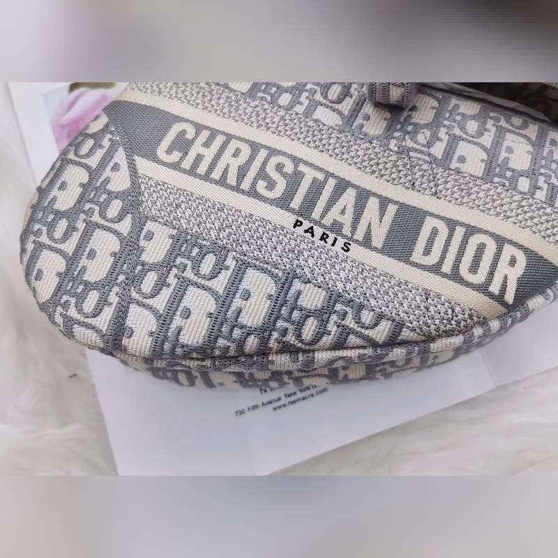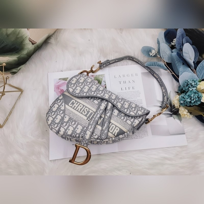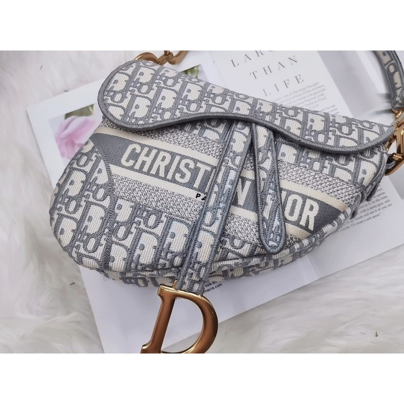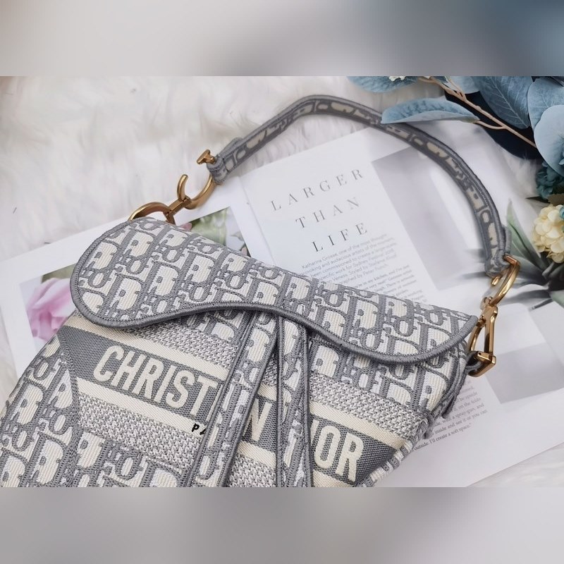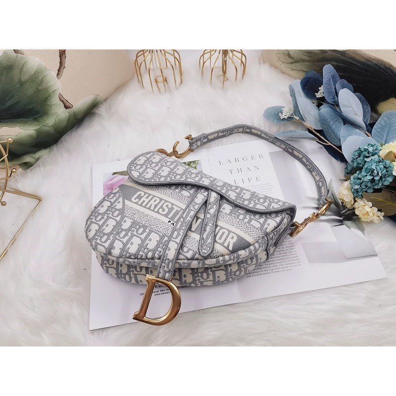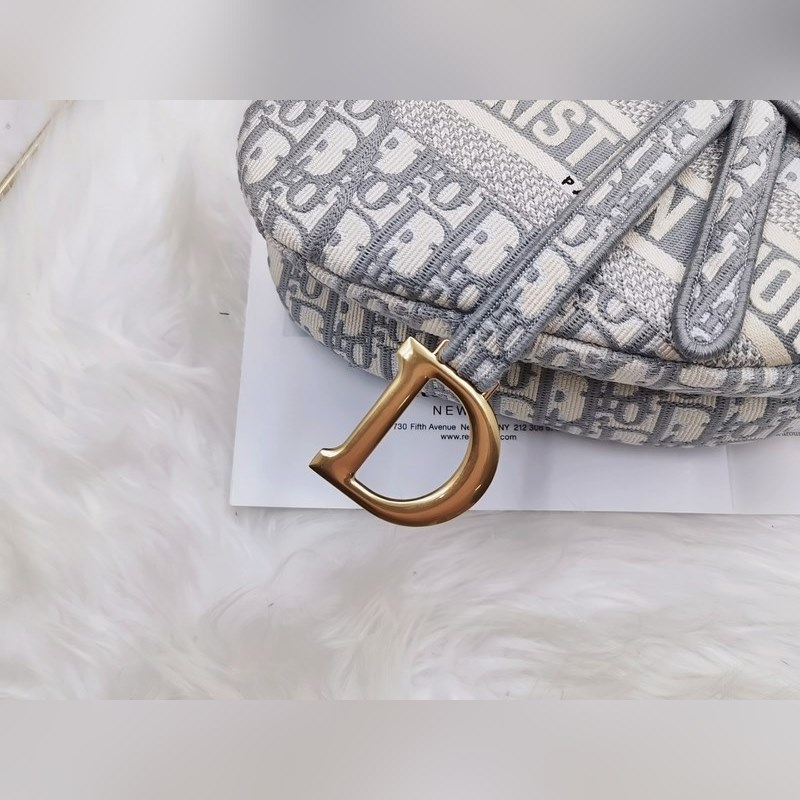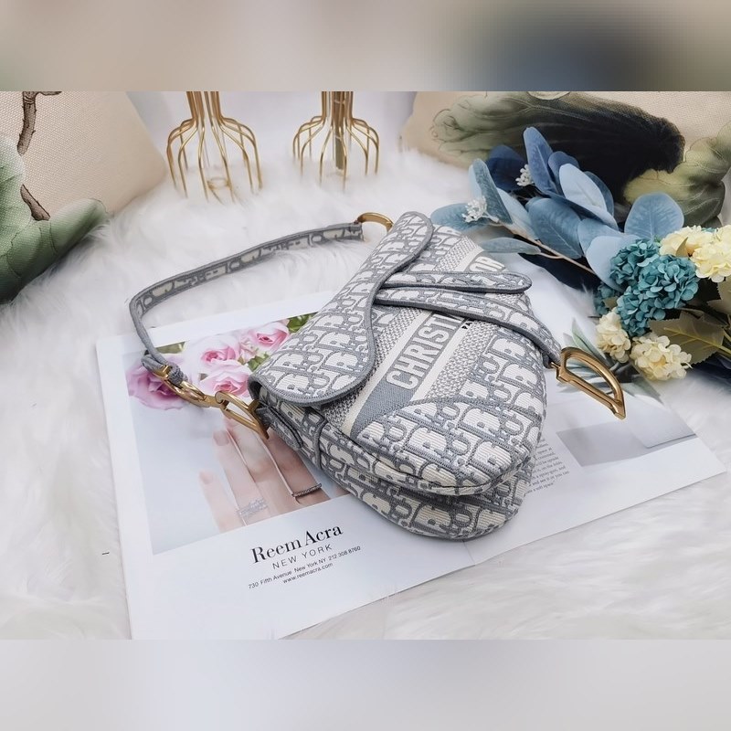 Dior 안장 비스듬한 자수 안장 가방 회색 오래된 꽃 모델 M90