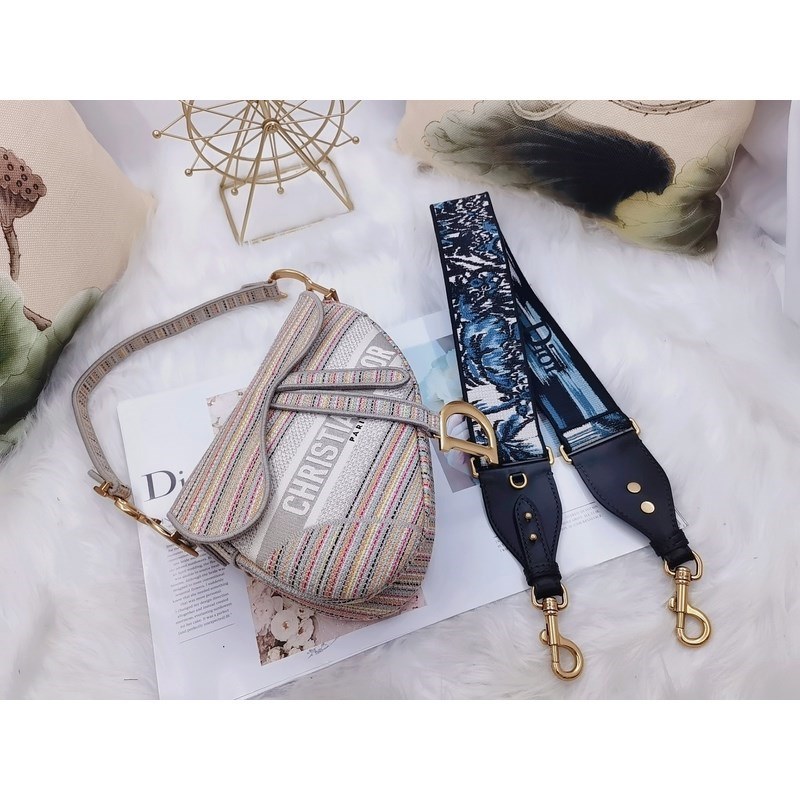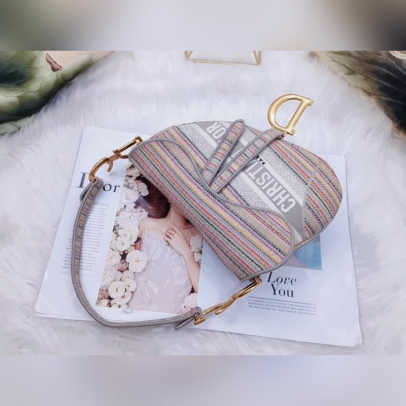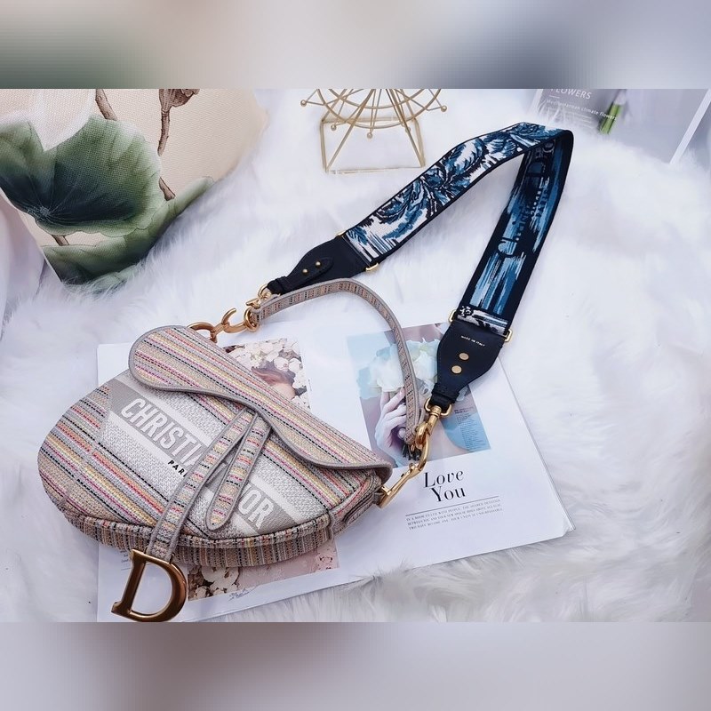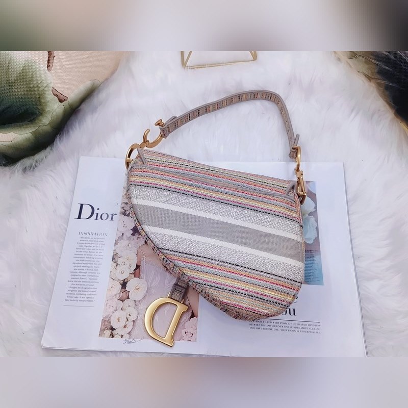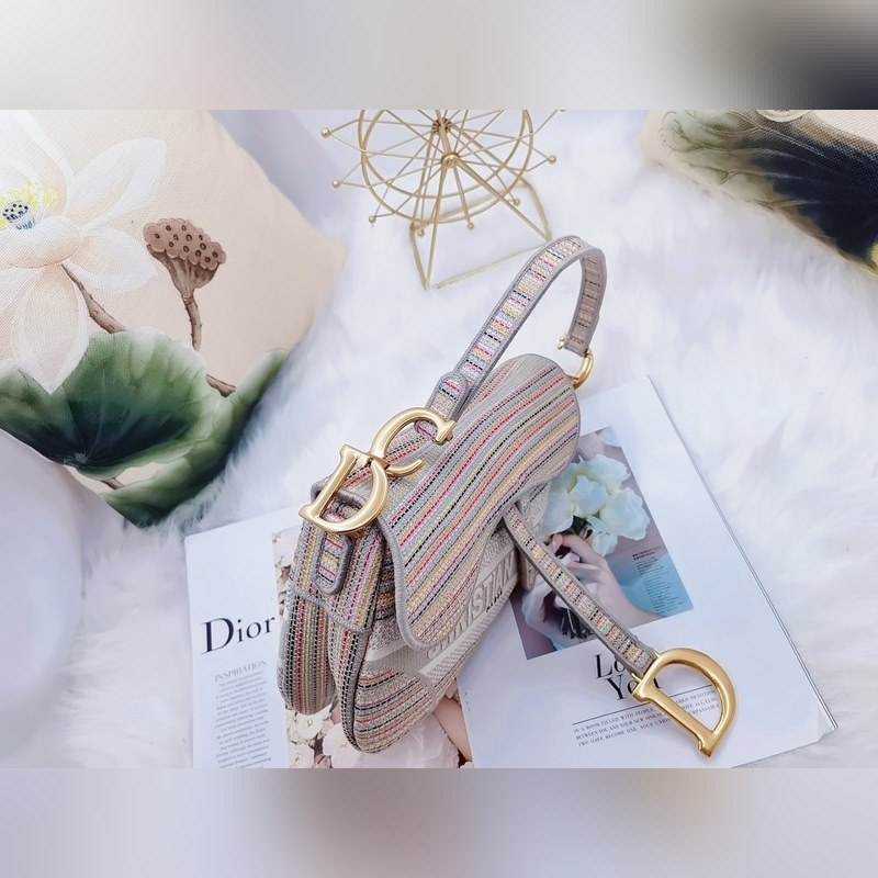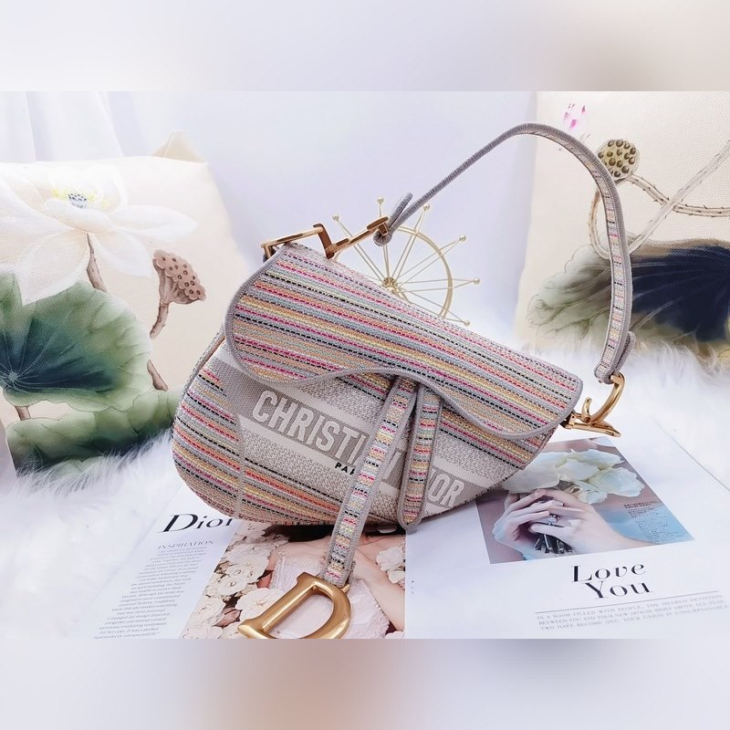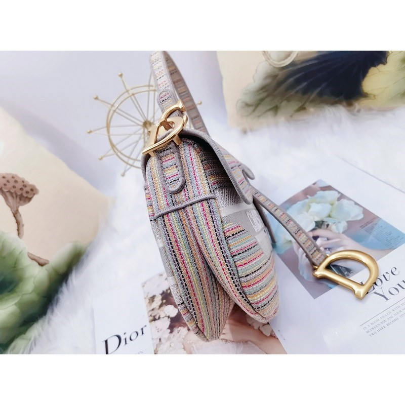 DIOR 새로운 패턴의 멀티 컬러 스트라이프 새들백 마리아 그라치아 치