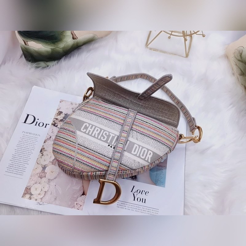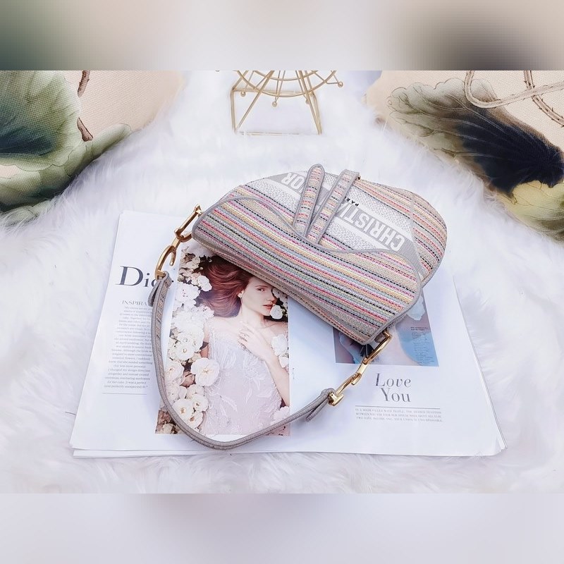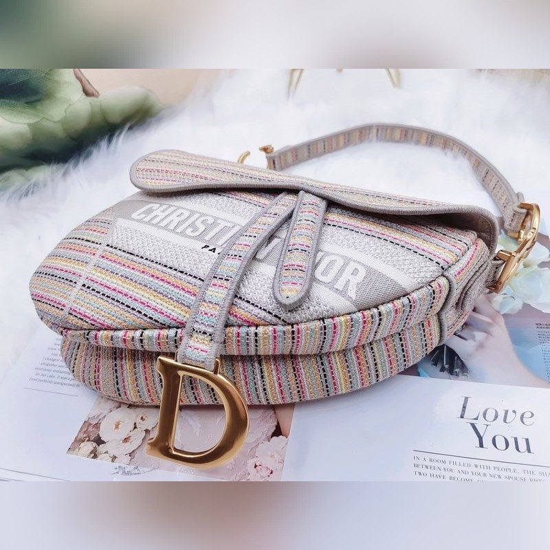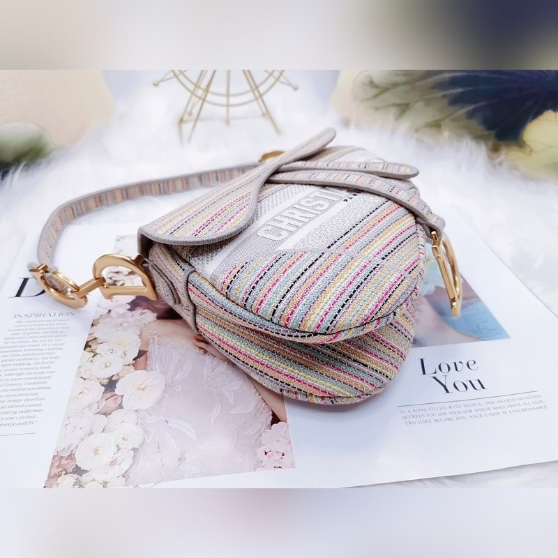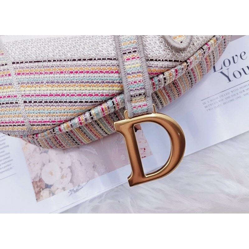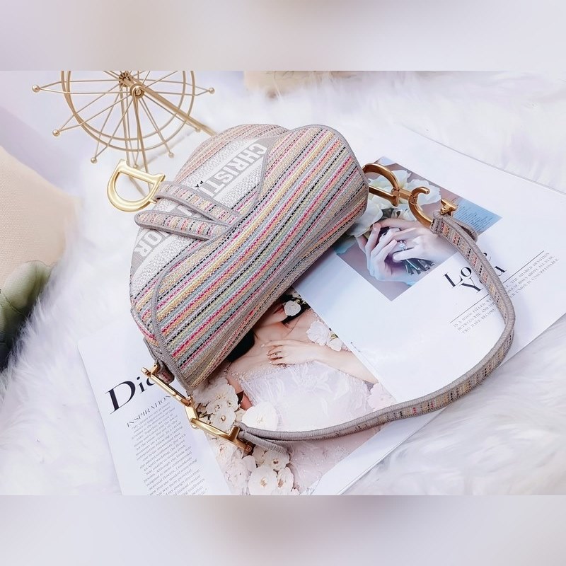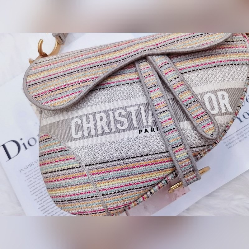 DIOR 새로운 패턴의 멀티 컬러 스트라이프 새들백 마리아 그라치아 치