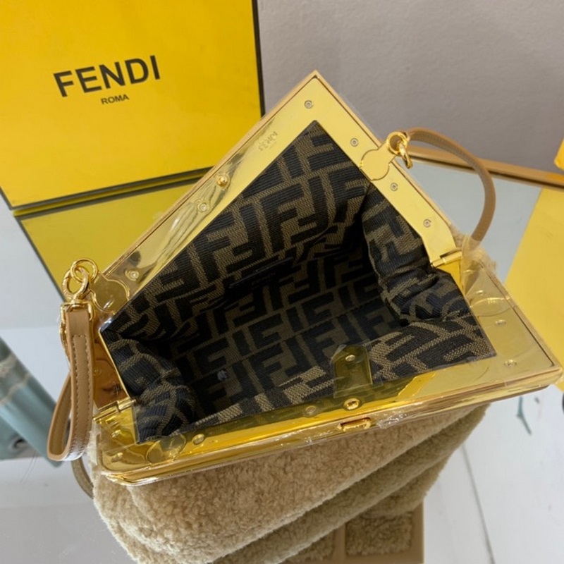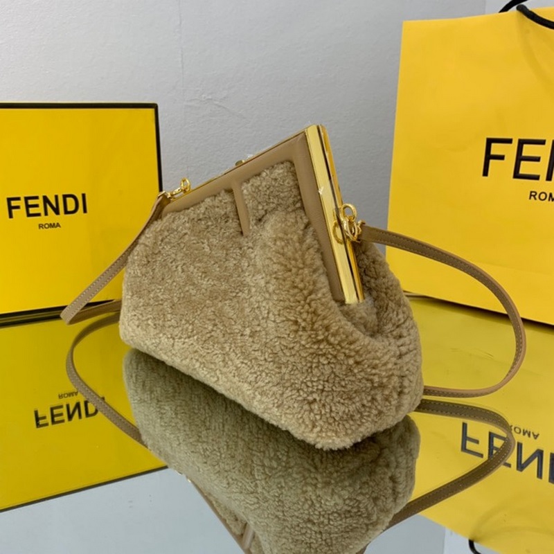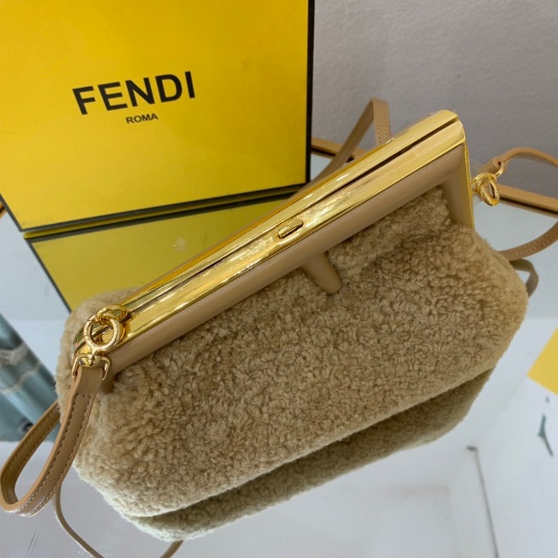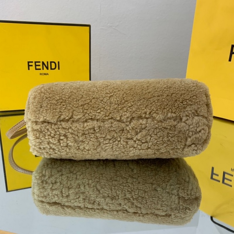 상단 양가죽 소 부드러운 살구색 메리노 양가죽 소재의 작은 가방 아이코닉한 FF 패턴 패브릭 안감의 나파 가죽 소재의 대형 금속 F 클립 버클 탈착식 내부 고리 금색 금속 부속품. 손이나 어깨에 메는 데 사용할 수 있는 탈착식 어깨 스트랩이 포함되어 있습니다. 이탈리아에서 제작되었습니다! 크기: 26*9.5*18cm. 전체 카운터 포장. 품번: BD96181480
