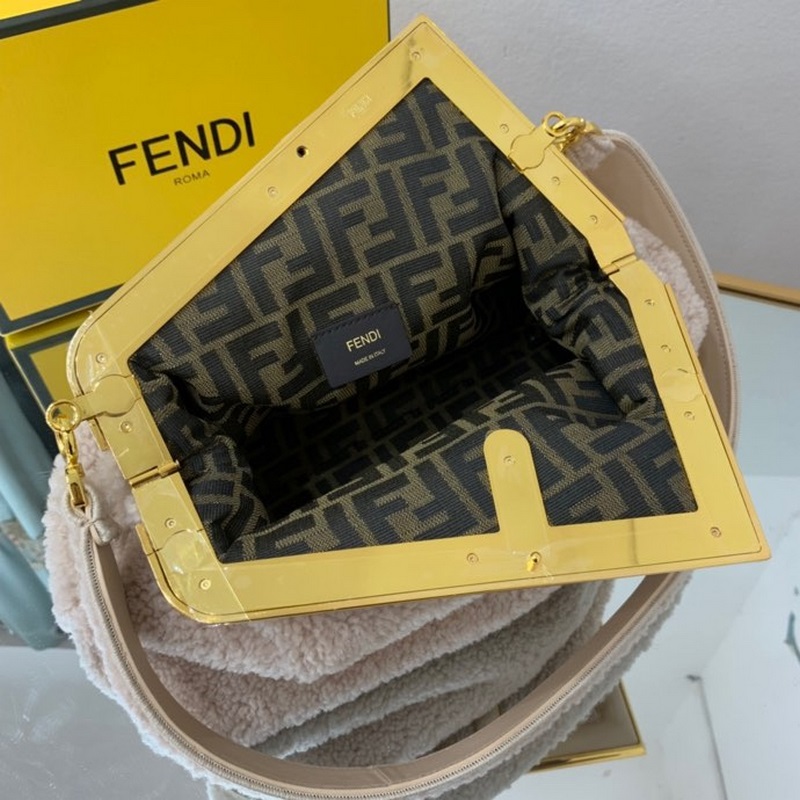 최고급 양가죽 대형 부드러운 핑크색 메리노 양가죽 소재의 큰 가방 같은 색상의 나파 가죽 소재의 대형 금속 F자형 클립 잠금장치. 내부에는 상징적인 FF 패턴의 패브릭 안감 탈착식 내부 고리 금색 금속 부속품이 있습니다. 손으로 들거나 어깨에 메는 데 사용할 수 있는 탈착식 어깨끈이 있습니다. 이탈리아에서 제작되었습니다! 크기: 32.5*15*23.5cm 전체 카운터 포장. 품번: BD96181580