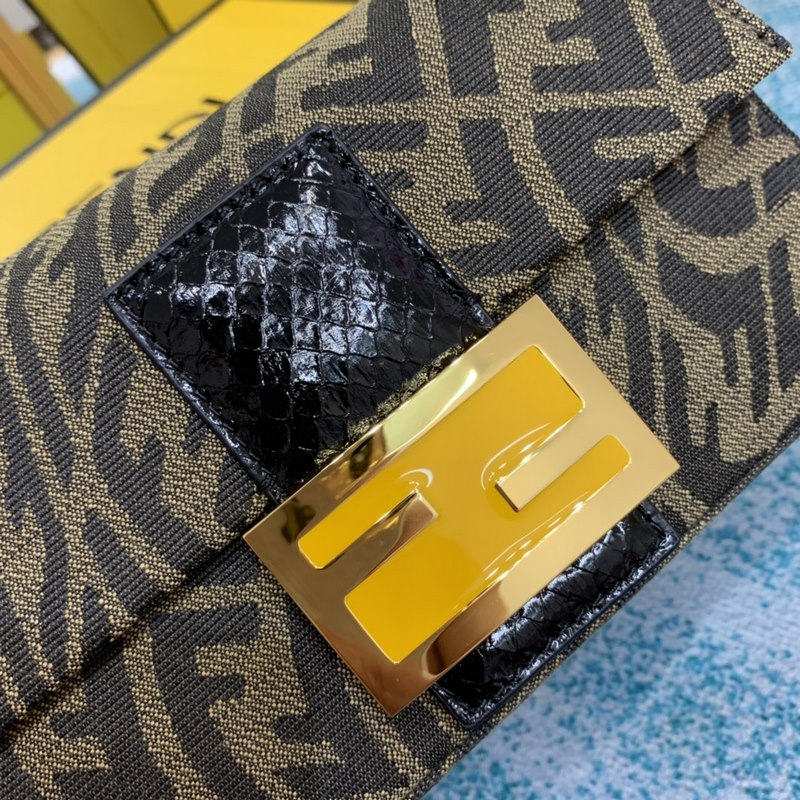 펜디 여름 캡슐 컬렉션 캔버스에 불규칙적으로 장식된 것은 대담하고 혁신적입니다. 스타일을 더해줄 독점적인 맞춤형 뱀 가죽 완장을 추가하세요. 크기 20×5×10 작은 능직 소재의 검은색 뱀 가죽 모델 번호: 2231: 상자 포함 No.: BD96181000