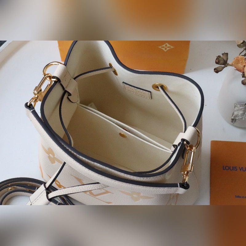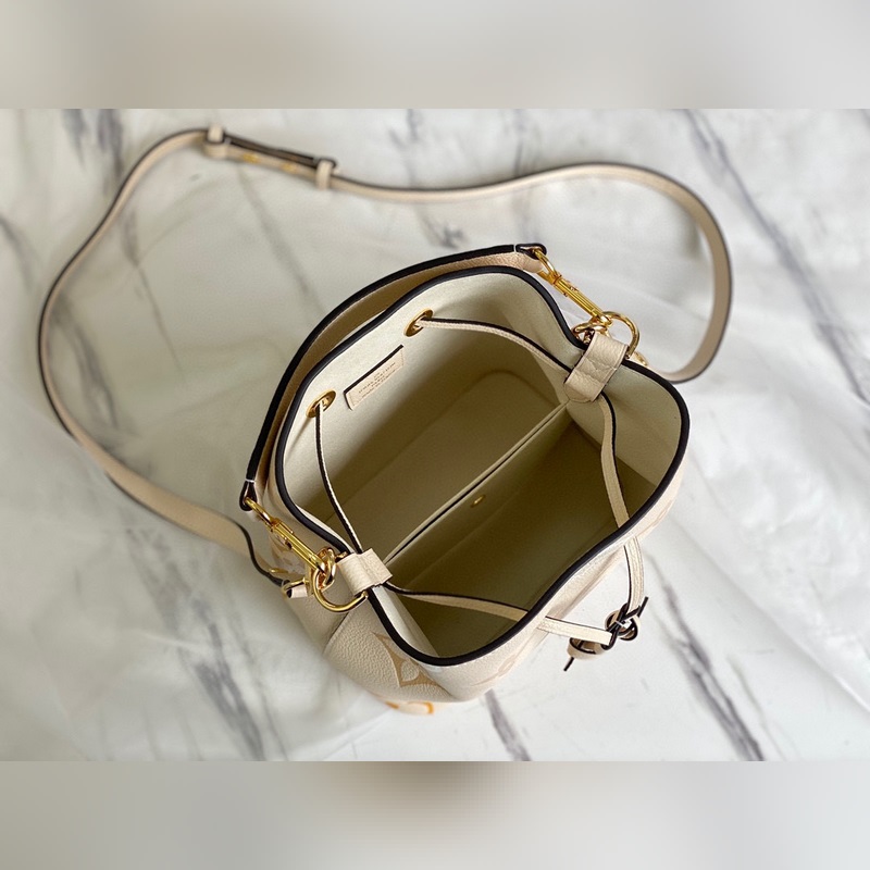 LV 모델 번호: M45716 바닐라 옐로우 N?oNo? BB 버킷 백 모노그램 앙프렝뜨 가죽에 파스텔 톤의 모노그램 자이언트 패턴이 축제 분위기를 더해줍니다. 탈착식 상단 손잡이는 손에 들거나 팔꿈치에 걸 수 있으며 길이 조절이 가능한 어깨 스트랩은 손에 들거나 어깨에 메는 방식으로 사용할 수 있습니다. 크기: 20 x 20 x 13cm 항목 번호: SG96181350 LD9618950