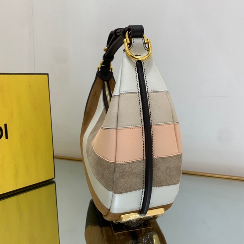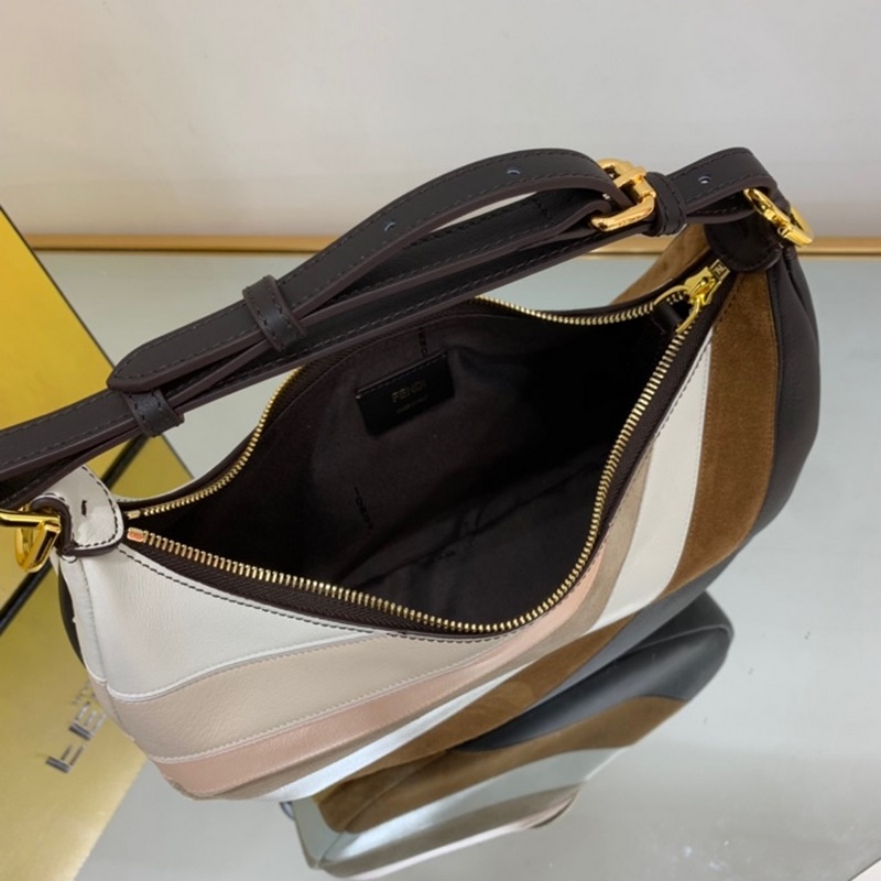 펜디 작은 초승달 가방 인레이 가죽 라미네이트 가죽 스웨이드를