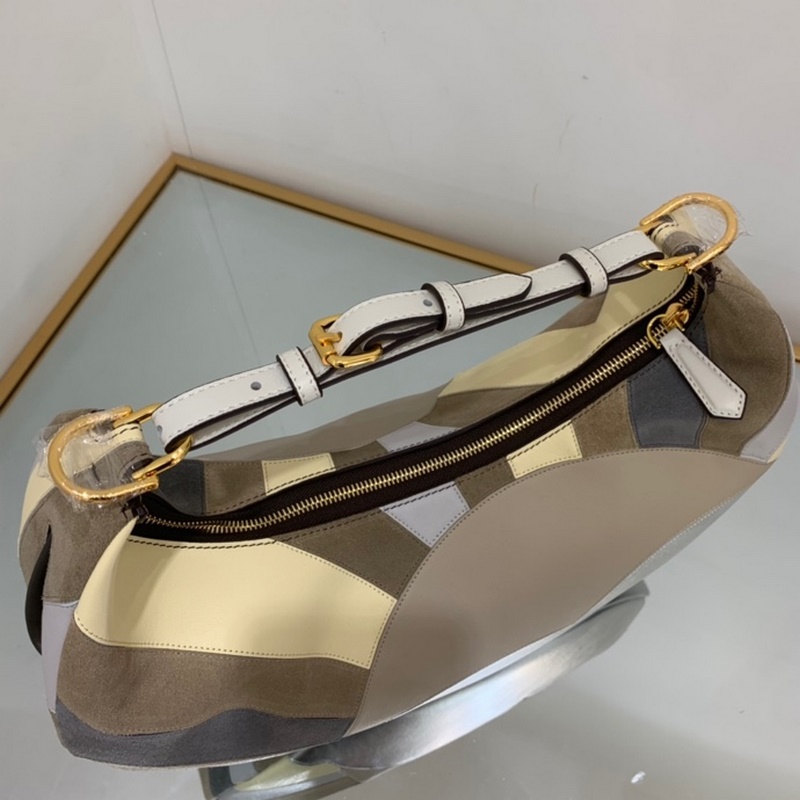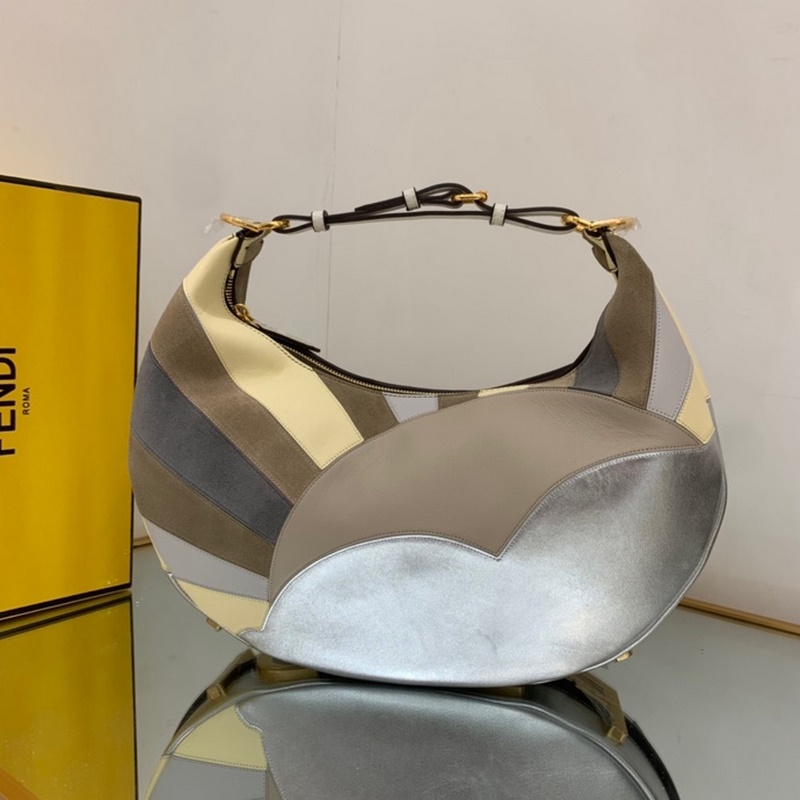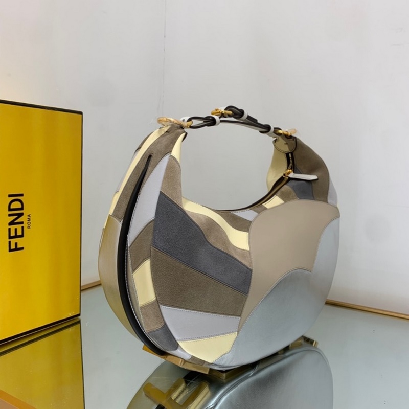 펜디 큰 초승달 가방 인레이 가죽 라미네이트 가죽 스웨이드를