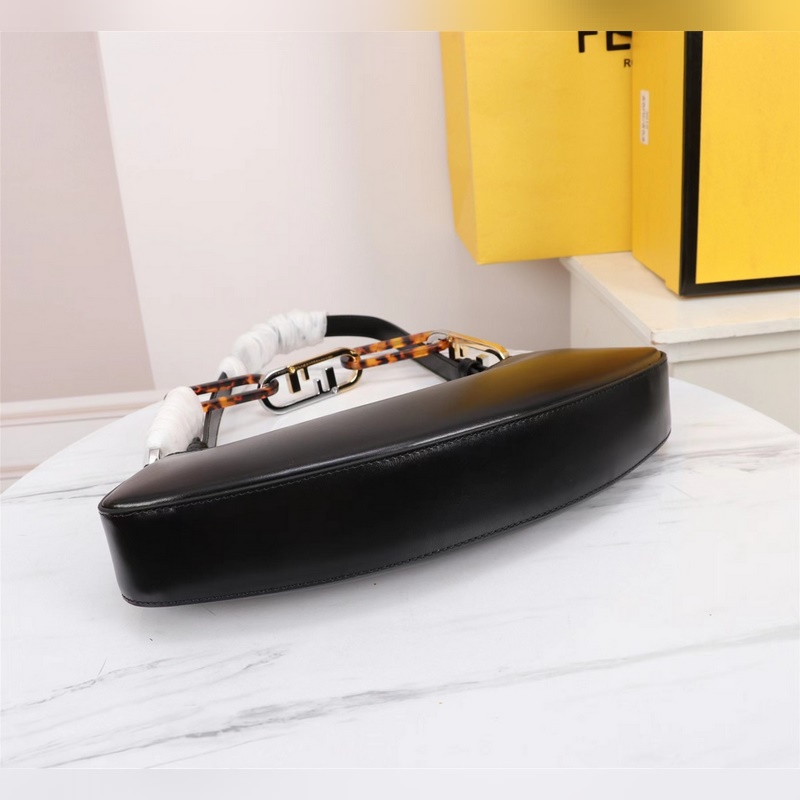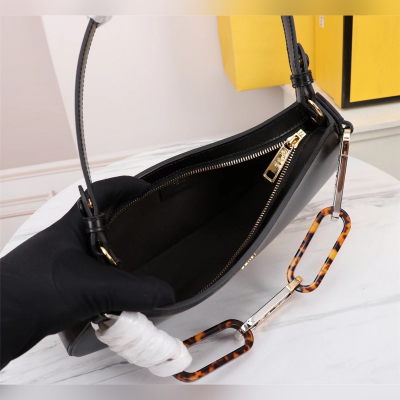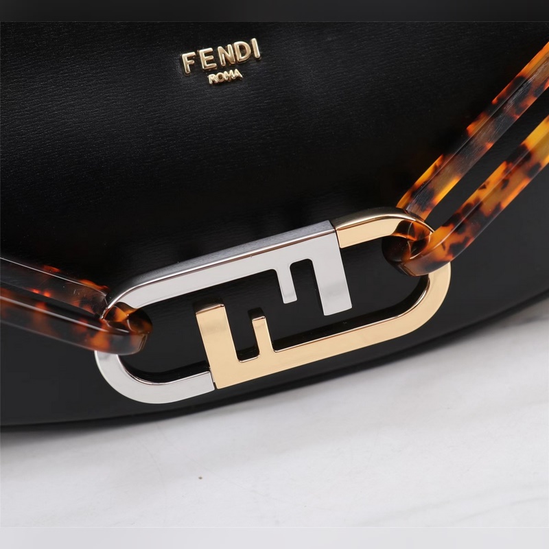 FENDI O자형 숄더백 골드와 실버 컬러가 혼합된 참신한 스타일. 더블 핸들과 탈착식 가죽 어깨 스트랩도 함께 제공됩니다! 거북이 등껍질 효과를 낸 플렉시글라스 체인으로 장식된 핸들은 매우 독특하며 손으로 들거나 팔 아래로 운반할 수 있습니다~ 품번: 8573 검정 크기 32x6x12cm