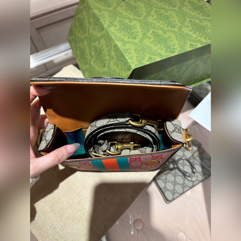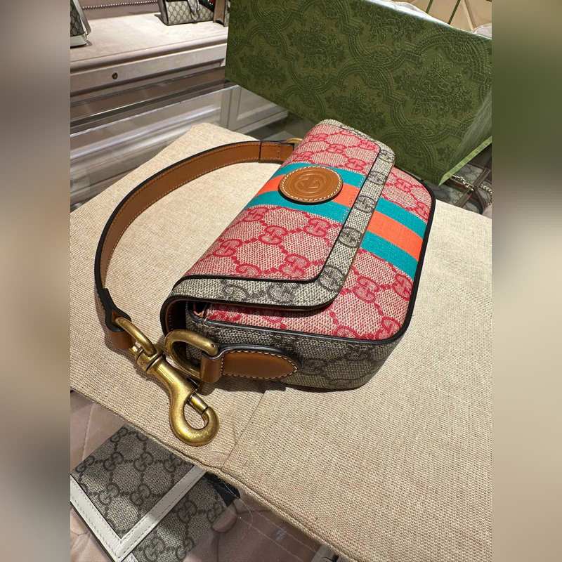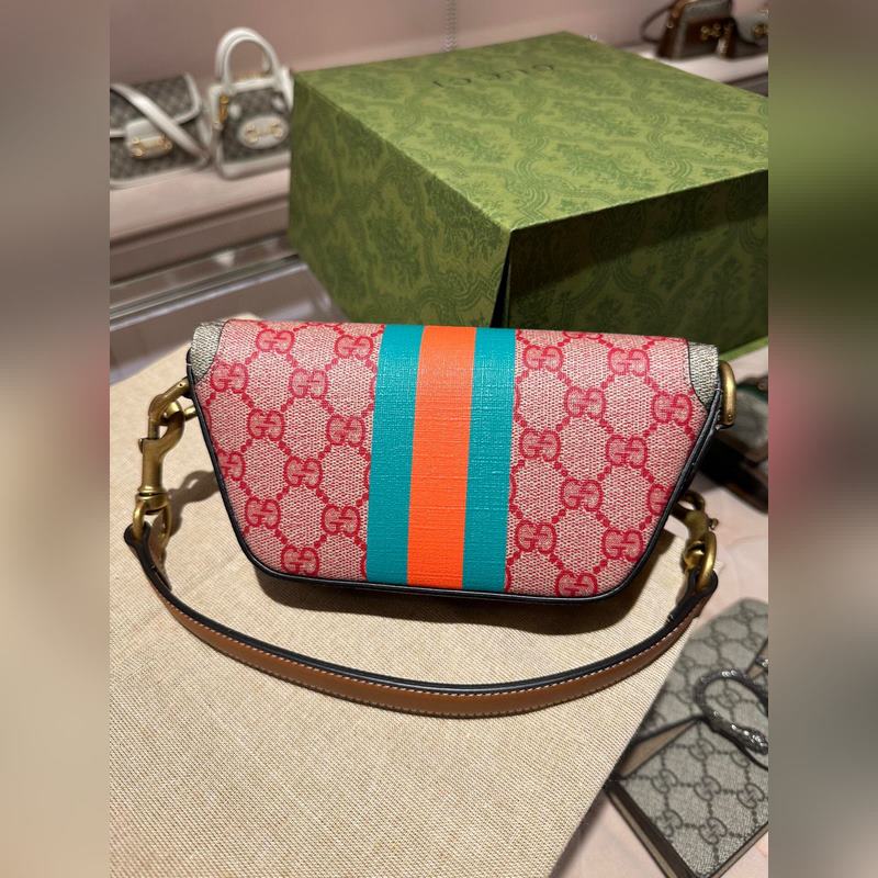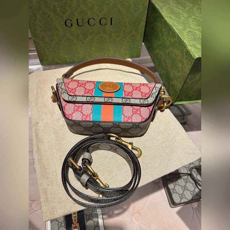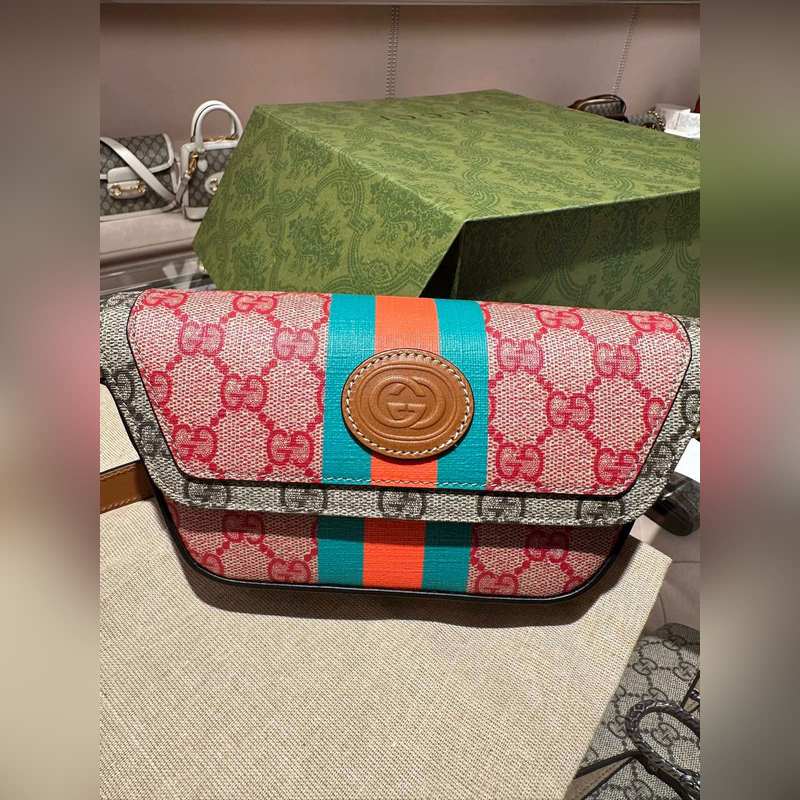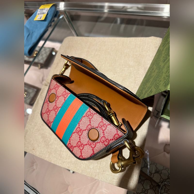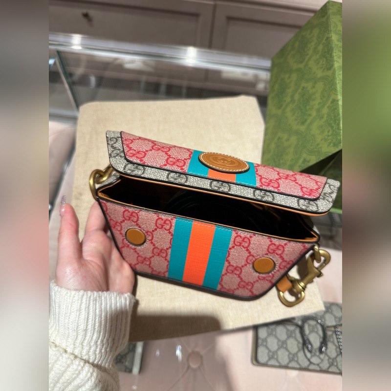 새해와 그 다음에 찾아오는 구정을 축하하기 위해 이 브랜드는 다양한 소재로 제작되고 구찌 로고로 장식된 다채로운 가죽 액세서리를 선보입니다. 스트라이프 웨빙은 역동적인 컬러 조합으로 제공되어 아카이브의 디테일에 현대적인 스타일을 더해 생동감을 불어넣습니다. 세부 정보 숨기기 핑크 GG 슈프림 캔버스 베이지색과 흑단색 GG Supreme 캔버스에 브라운 가죽 트리밍 가죽 끈 인쇄 흐릿한 원단과 면/린넨 안감 맞물리는 이중 G 타원형 가죽 태그 내부: 1개의 오픈 포켓 손잡이(높이 14cm) 어깨끈(길이 47cm) 자석 걸쇠 13-18cm(가장 넓은 지점) x 10cm(높이) x 4.5cm(깊이)