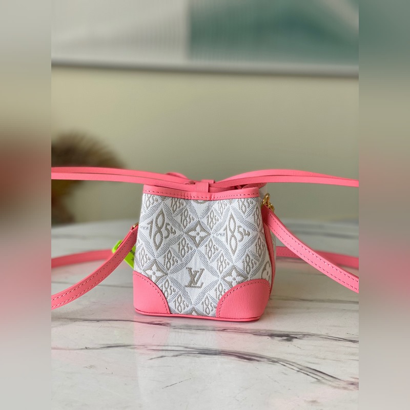 LV 아니요. M81112 노에 지갑 핸드백 클래식한 노에 핸드백이 컴팩트 버전으로 압축되어 1854년 이후 자카드 캔버스에 로고와 창립 연도가 교묘하게 엮여 있습니다. 탈부착 및 길이 조절이 가능한 가죽 숄더 스트랩은 어깨에 메거나 몸에 걸칠 수 있으며 수하물 태그는 브랜드의 여행 유산을 기리는 의미입니다. 크기: 11.5 x 12 x 11.5cm 품번: SG96181080