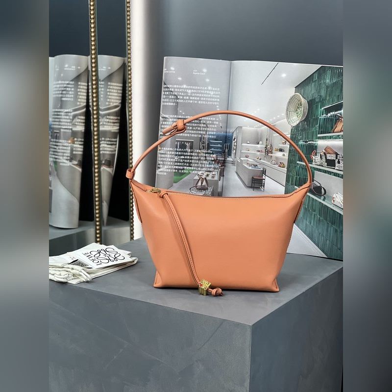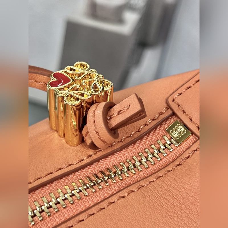 로에베 스몰 나파 가죽 핸드백 석양 붉은색 Cubi 가방은 소가죽 소재의
