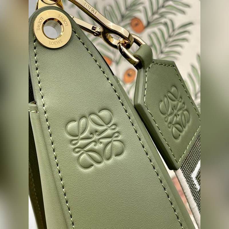 LOEWE Luna Half-moon Hobo Bag 모델: L10193 이 가방은 부드럽고 여성스러운 디자인에 조각 같은 실루엣과 곡선형 이중 입구로 구성되어 있습니다. 숨겨진 슬라이딩 아일렛과 탈착식 숄더 스트랩이 있어 활용도가 높습니다. 이 소형 버전은 새틴 소가죽으로 만들어졌으며 LOEWE 자카드 스트랩이 특징입니다. 숄더백 * 탈착식 숄더 스트랩 * 내부 슬립 포켓 1개 * 헤링본 코튼 캔버스 안감 * 양각 금속 LOEWE Made in Spain! 크기: 30.5/20.5/6cm.