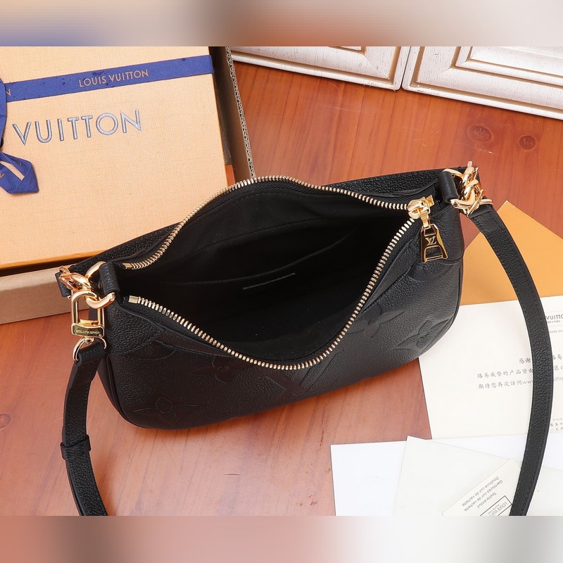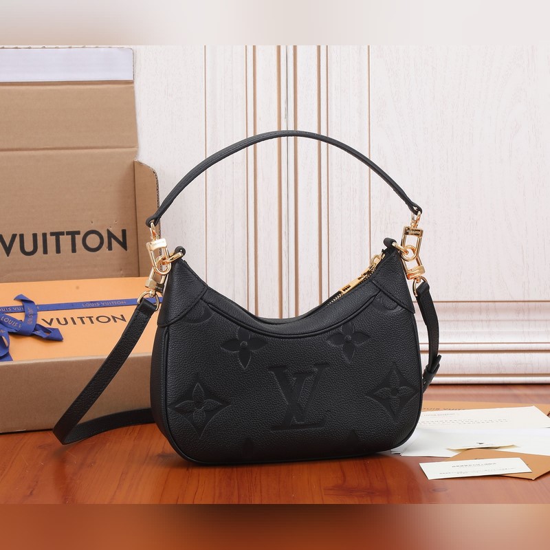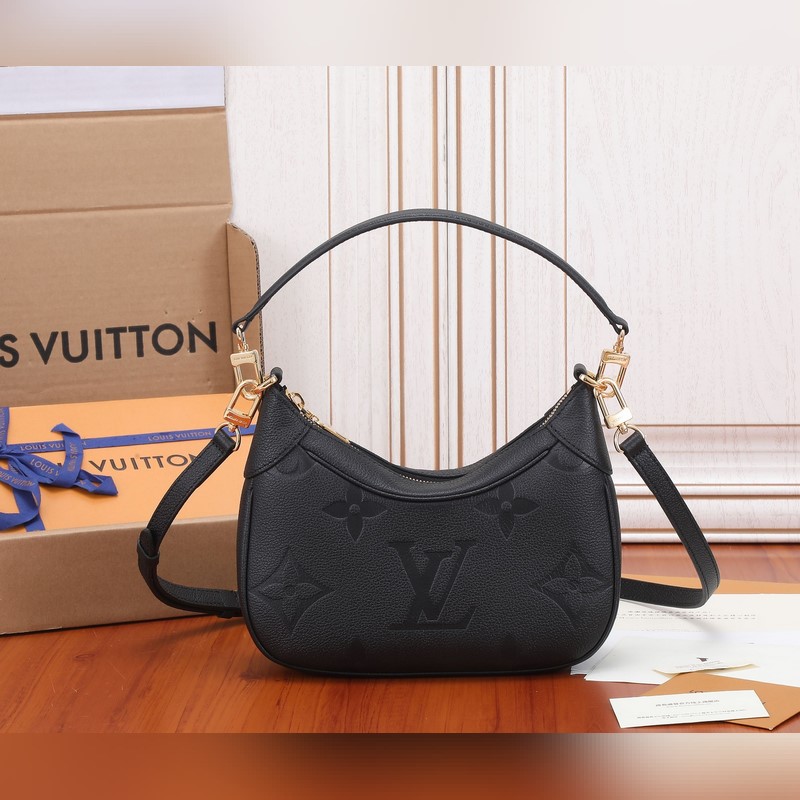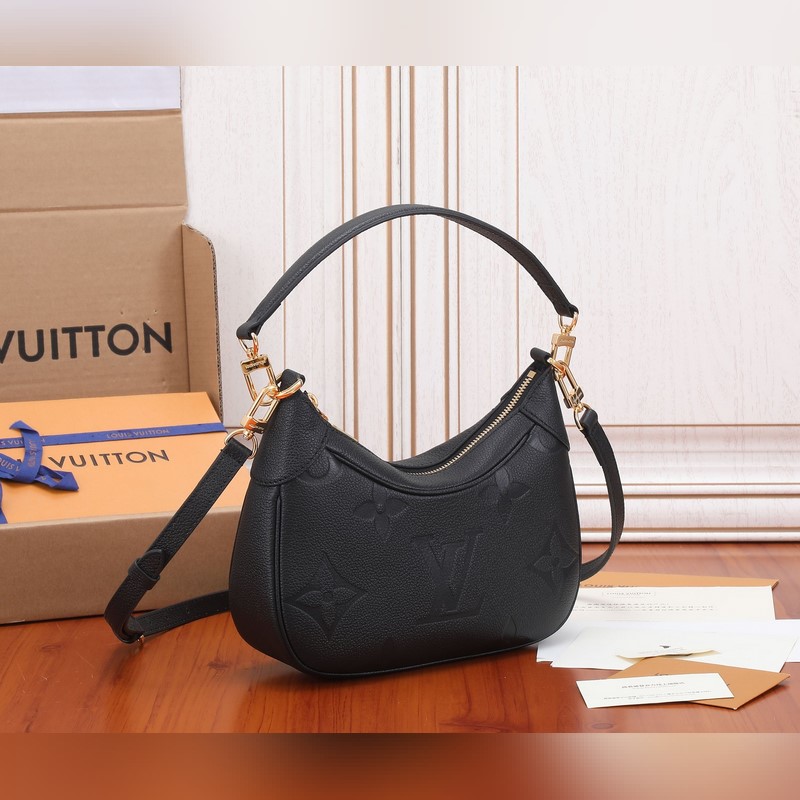 LV 바가텔 핸드백 모노그램 앙프렝뜨 가죽으로 제작되었습니다. 흐르는 듯