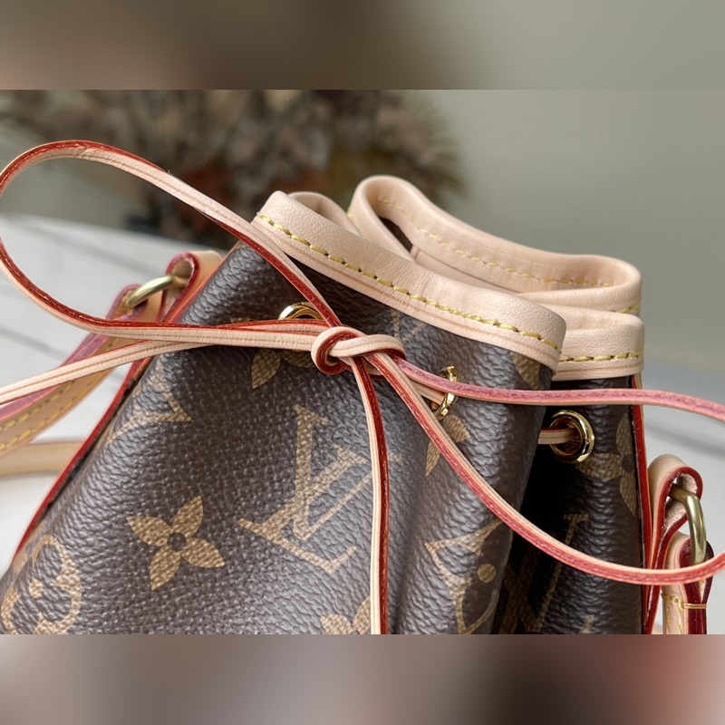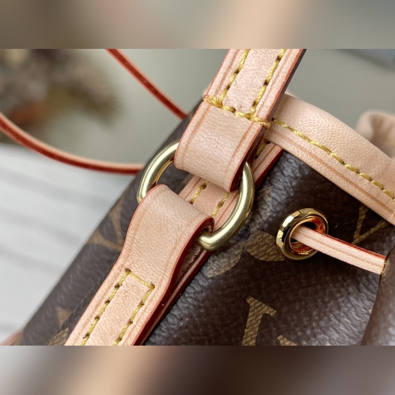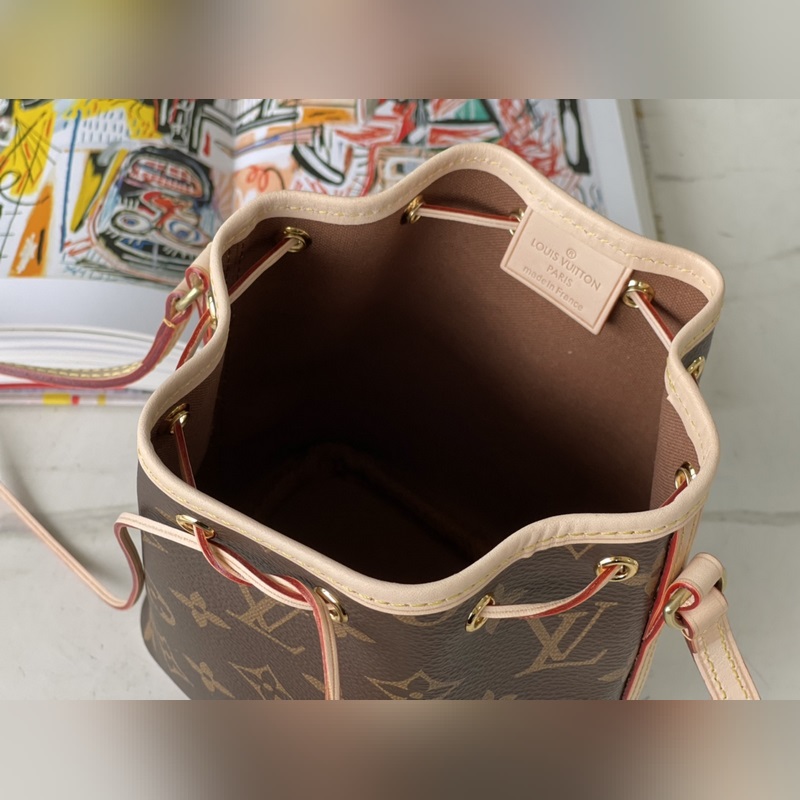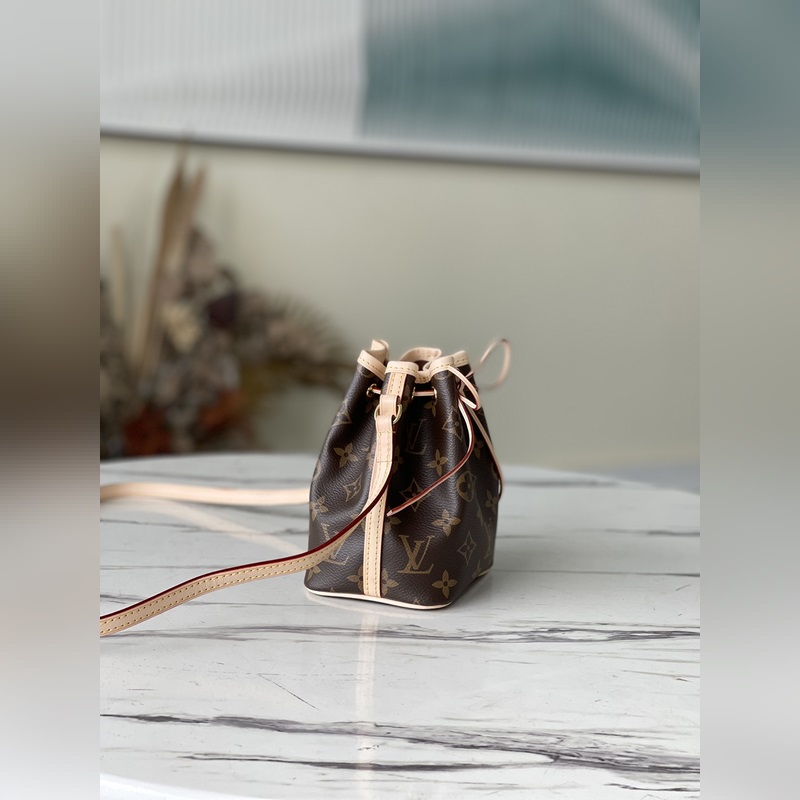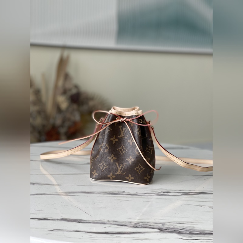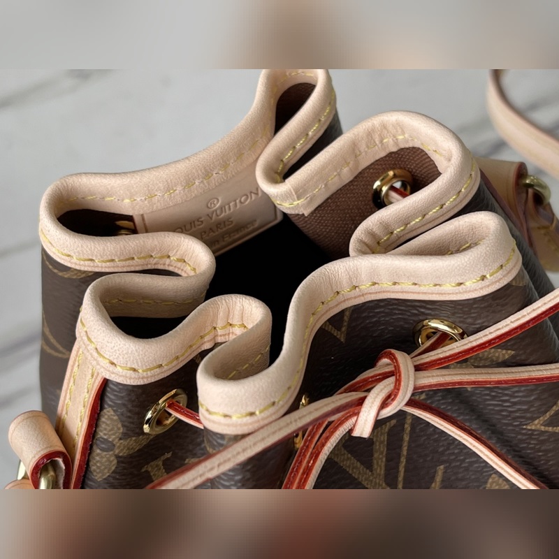 LV 모델 번호: M41346 클래식한 캔버스로 만든 핸드백 매우 여성스럽고 일상적인 물건을 휴대하기에 이상적입니다. 이 핸드백은 섬세한 스티치와 가벼운 무게를 자랑하는 오리지널 노에 백의 미니 버전으로 스마트폰 신용카드 열쇠 등을 쉽게 넣을 수 있습니다. 크기: 13 x 16 x 10cm 품번: SG9618820