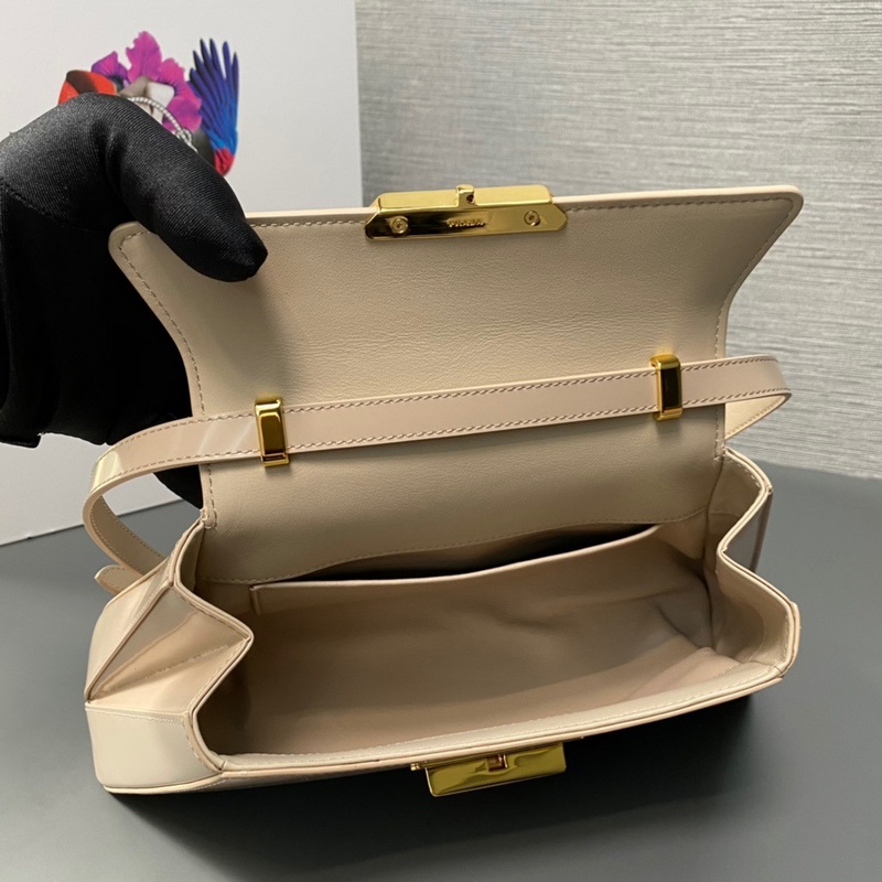 [최고 품질의 오리지널 싱글] (새로운 소형 사이즈) 런웨이 모델 1BD343이 출시되었습니다! 이 런웨이 모델은 수입된 광택 있는 송아지 가죽으로 만들어졌으며 안감은 양가죽입니다. 사다리꼴 디자인은 예술적 매력이 넘치고 길고 짧은 두 개의 탈착식 스트랩과 앞면 패널에 글자가 새겨진 마이크로 락/플랩 디자인이 있어 상황에 따라 다른 스트랩과 매치할 수 있습니다. 용량이 큽니다. 상체가 멋져서 마음에 듭니다. 지금 구입하세요! 크기: 길이 28.5 x 높이 14 x 밑면 7cm!