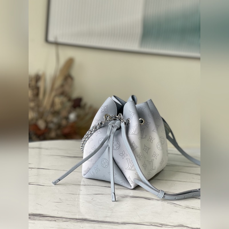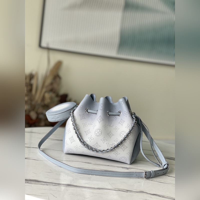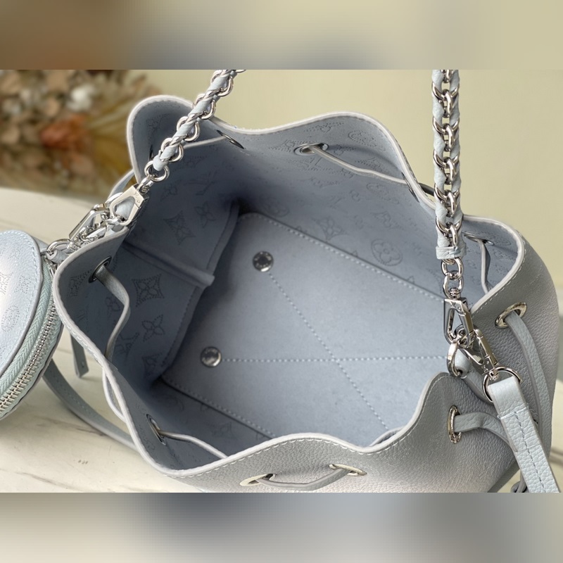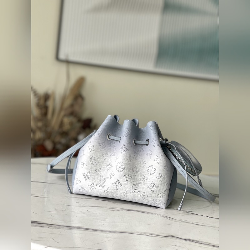 LV 모델 번호: M20507 구멍이 뚫린 소가죽과 소가죽 트림으로 만든 버킷 백 손으로 그린 그라데이션 효과로 완성된 제품 하나하나에 후광과 같은 정교한 느낌을 줍니다. 섬세한 모양에 끈과 탈착식 동전 지갑이 달려 있습니다. 크기: 19 x 22 x 14cm 품번: SG96181480