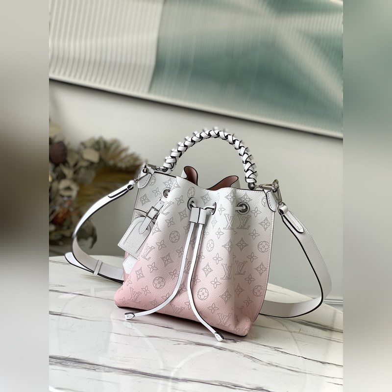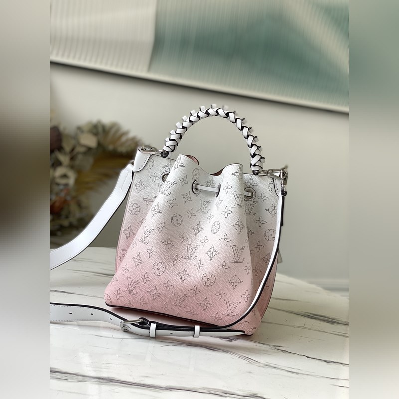 LV 상품 번호: M57853 그라데이션 핑크 무리아 버킷 백 송아지 가죽 소재 짠 손잡이와 긴 가죽 어깨끈이 달려 있습니다. 크기: 25 x 25 x 20cm 품번: SG96181650