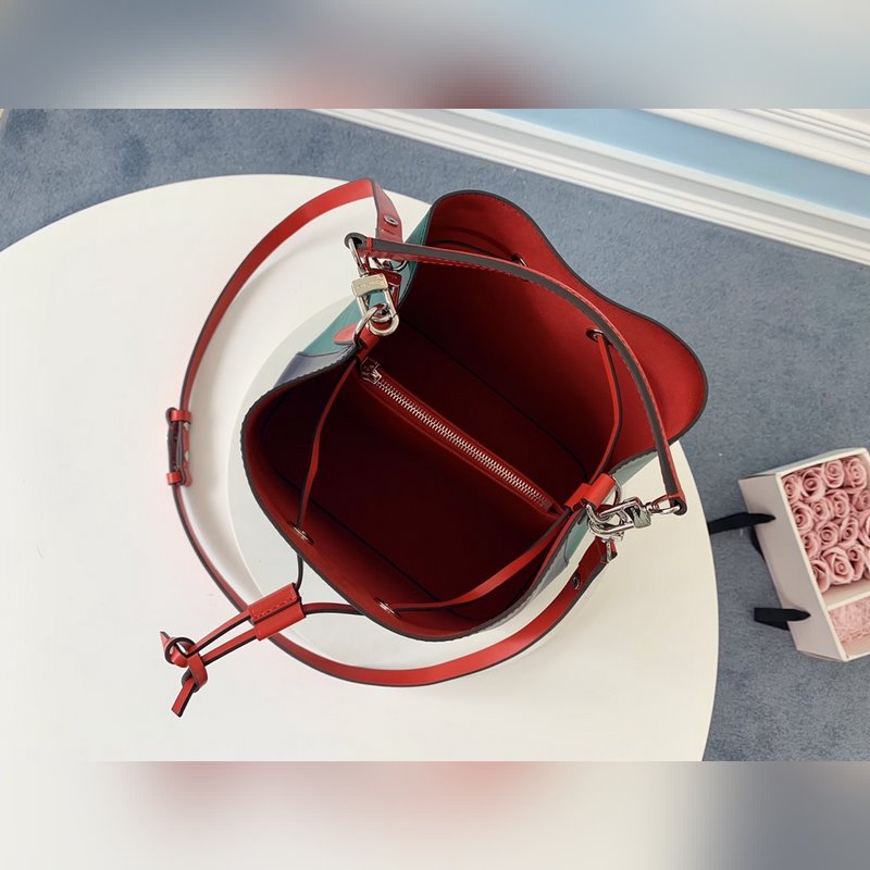 LV 모델 M54366 녹색-파랑 LOCKME BUCKET 핸드백 이 세련된 버킷 백의 디자인은 우아하면서도 튼튼한 가방을 기반으로 합니다. 1932년 부유한 와인 농장 소유주를 위해 맞춤 제작된 물결무늬 컬러 블록 버킷 백은 샴페인 병을 운반하는 데 사용되었습니다. 깔끔한 디자인은 현대적인 패션 요소로 가득합니다. 크기: 24.5*27*15CM 항목 번호: SG96181280 아니오 GS9618