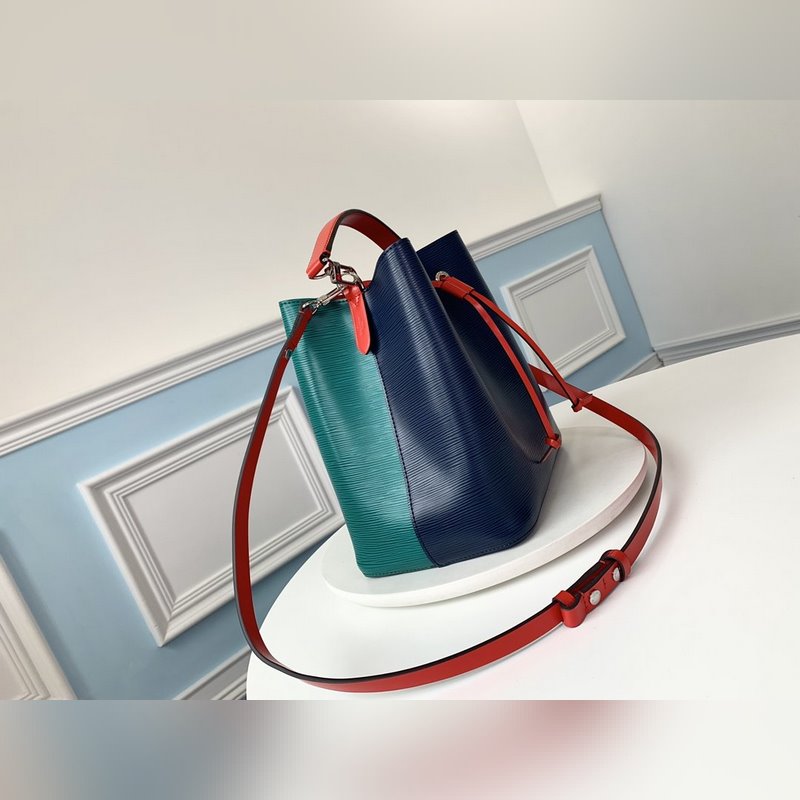 LV 모델 M54366 녹색-파랑 LOCKME BUCKET 핸드백 이 세