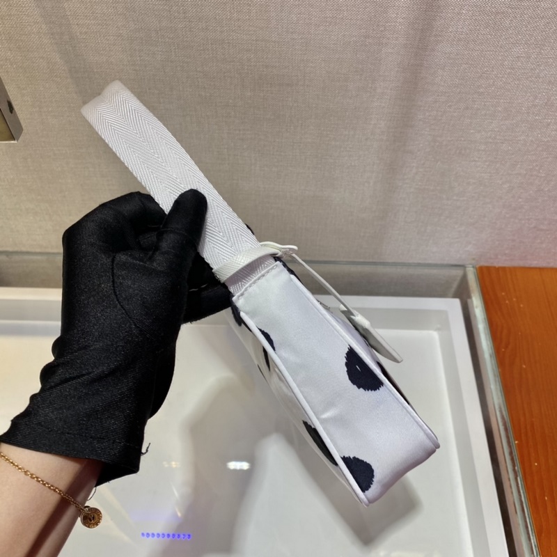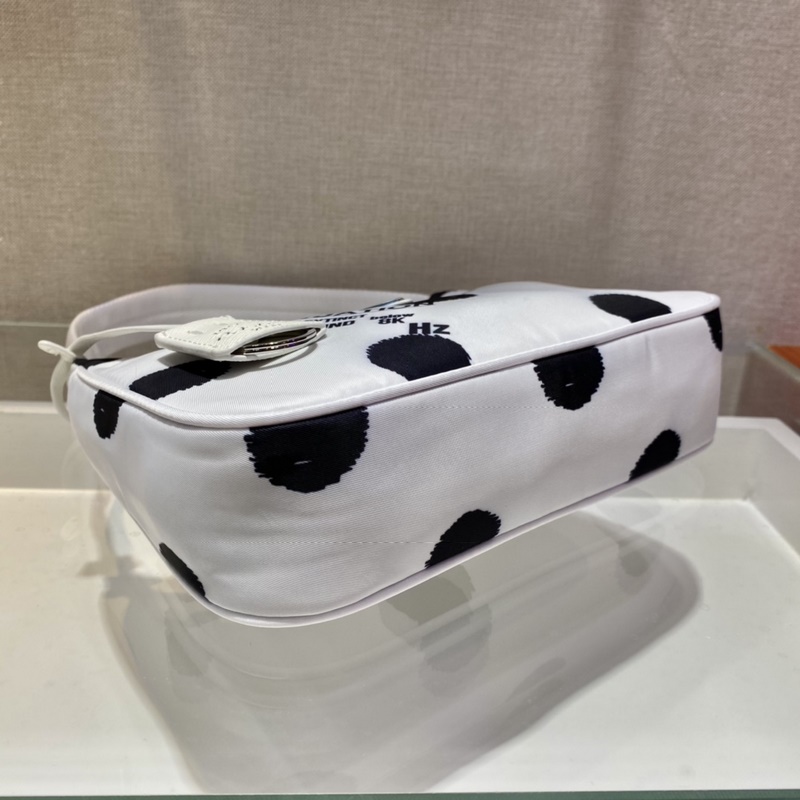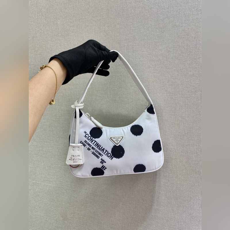 프라다 언더암 백 스타일 번호: 1NE515/2000 시리즈 이 2000 미니 핸드백은 재활용 나일론으로 만든 아이코닉한 디자인을 재해석한 제품입니다. 재활용 나일론으로 만들어졌으며 바다에서 회수한 얽힌 어망과 섬유로 만들어졌습니다. 이 가방은 지퍼와 패브릭 손잡이가 특징이며 본체는 검은색 원형 패턴으로 장식되어 독특하고 세련된 느낌을 줍니다. 길이 22 x 높이 17 x 밑면 6cm 아이템 번호: JY9618850