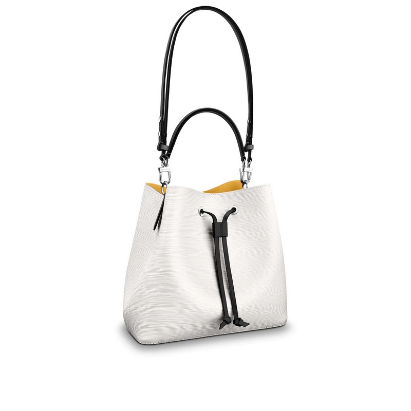 LV 에피 가죽 버킷백 컬러 본드 마이크로파이버 안감 - 색깔이 있는 소가죽 트림 은색 금속 부속품 - 내부 지퍼 포켓 1개 - 조절 및 탈착 가능한 어깨 스트랩 1개(스냅 버튼 포함) - 탈착식 상단 손잡이 1개 - 타이 클로저 SG96181280 GS9618680 크기 26.0 x 26.0 x 17.5cm (가로 x 세로 x 높이)